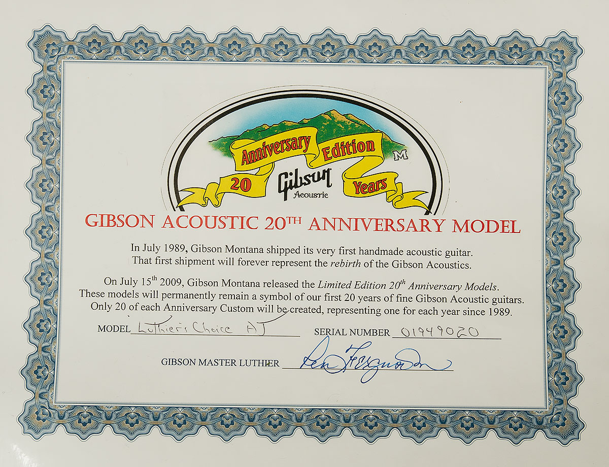 Used 2009 Gibson 20th Anniversary Luthier’s Choice Advanced Jumbo – Limited Run of 20 Worldwide