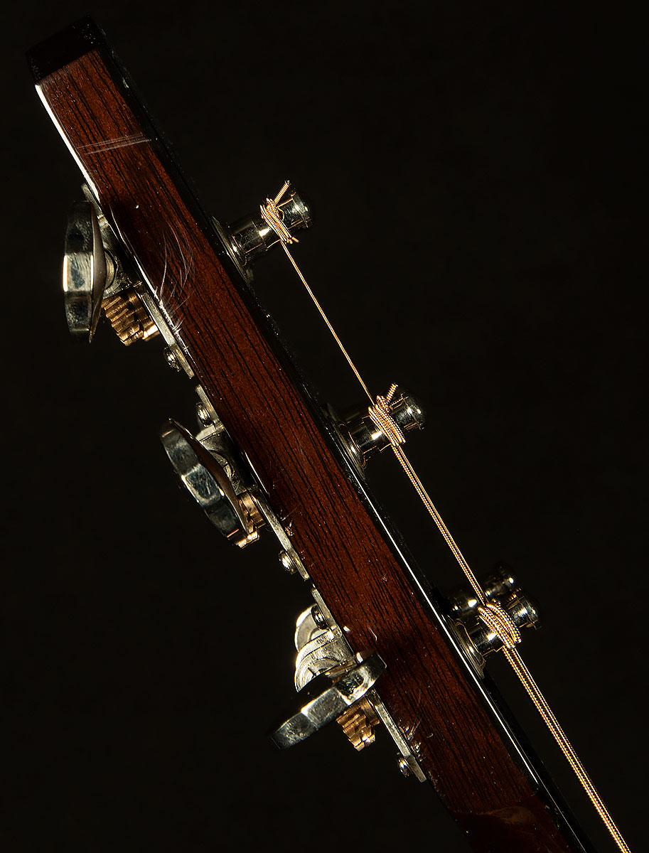 As a strummer or flatpickin' machine, it's glorious. It's so loud that I felt a little rude for trying to find its volume ceiling this early in the morning, and it has oodles of headroom, so it sounds nice and open even when it's deafeningly loud. Speaking of power, the low E sounds gargantuan, but it also has a wonderful woody, dry vintage character that keeps the guitar in balance. The fundamental booms on a different level than most rosewood-backed guitars, although that's not to say it doesn't sound--far from it! The midrange and trebles bloom with a beautiful bouquet of sweet overtones. And, it's so lively, you almost feel like it's going to vibrate out of your hands!