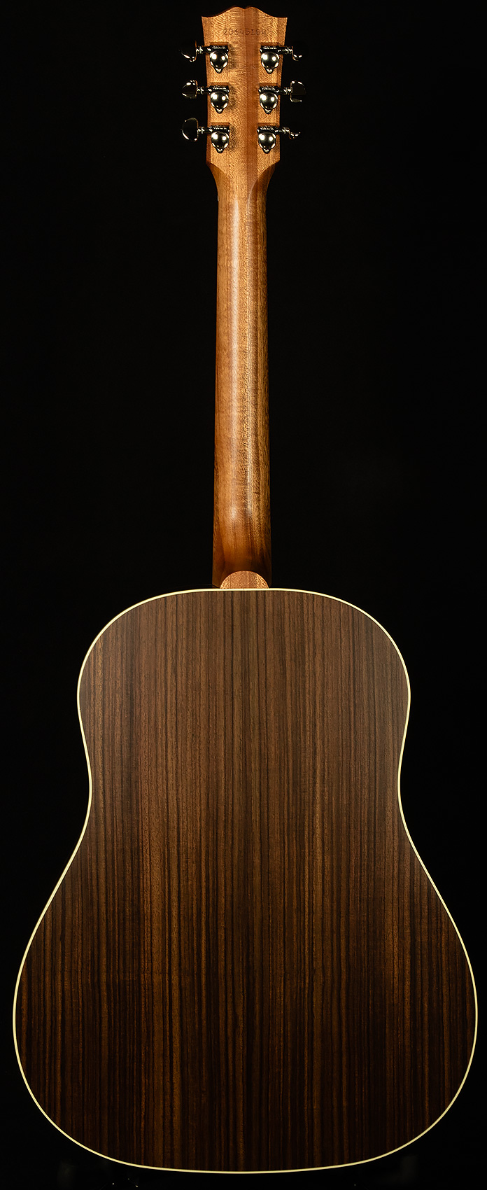 Wildwoodians, the Modern Collection J-45 Studio Rosewood is a workhorse of epic proportions. At a very player-friendly price point, it offers a spectacular spin on classic J-45 tone with all the conveniences that modern players crave. Like all Gibsons, it has light bracing that allows for maximum responsiveness as well as superior volume and projection. The rosewood back and sides lend it unbelievably deep, rich bass response as well as lush, sparkling trebles and transparent midrange, and the short scale length gives the attack an articulate, percussive quality. All together, that means that the J-45 Studio Rosewood is as excellent for delicate fingerpicked passages as it is for enthusiastic campfire strumming.