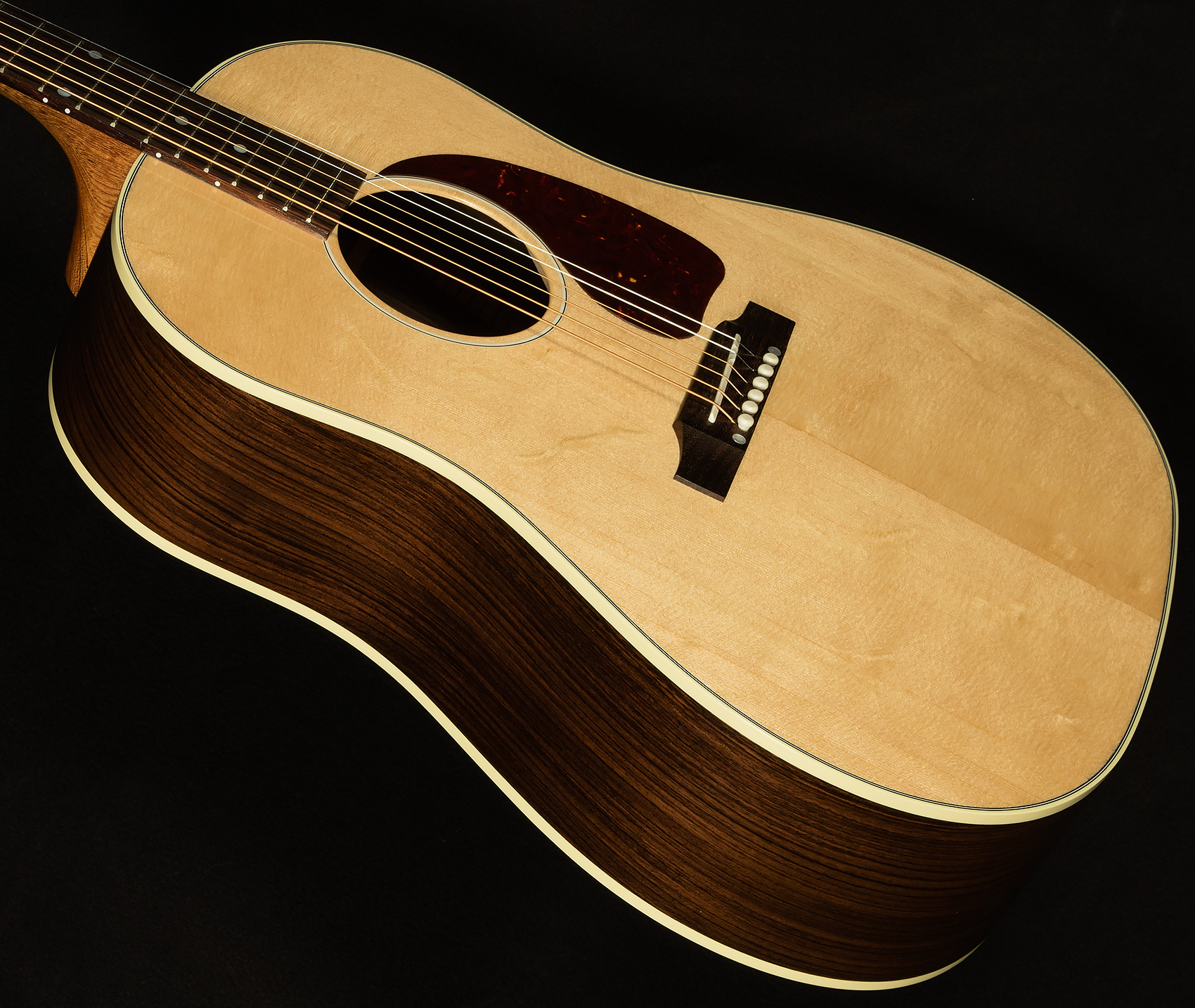 This model also sports a satin finish, which gives it a beautifully earthy, rustic appearance and a slightly different flavor of J-45 tone. The satin finish boosts volume slightly, and gives it a pleasingly raw, boomy tone that makes every note feel like it's coming out of the guitar's soul.