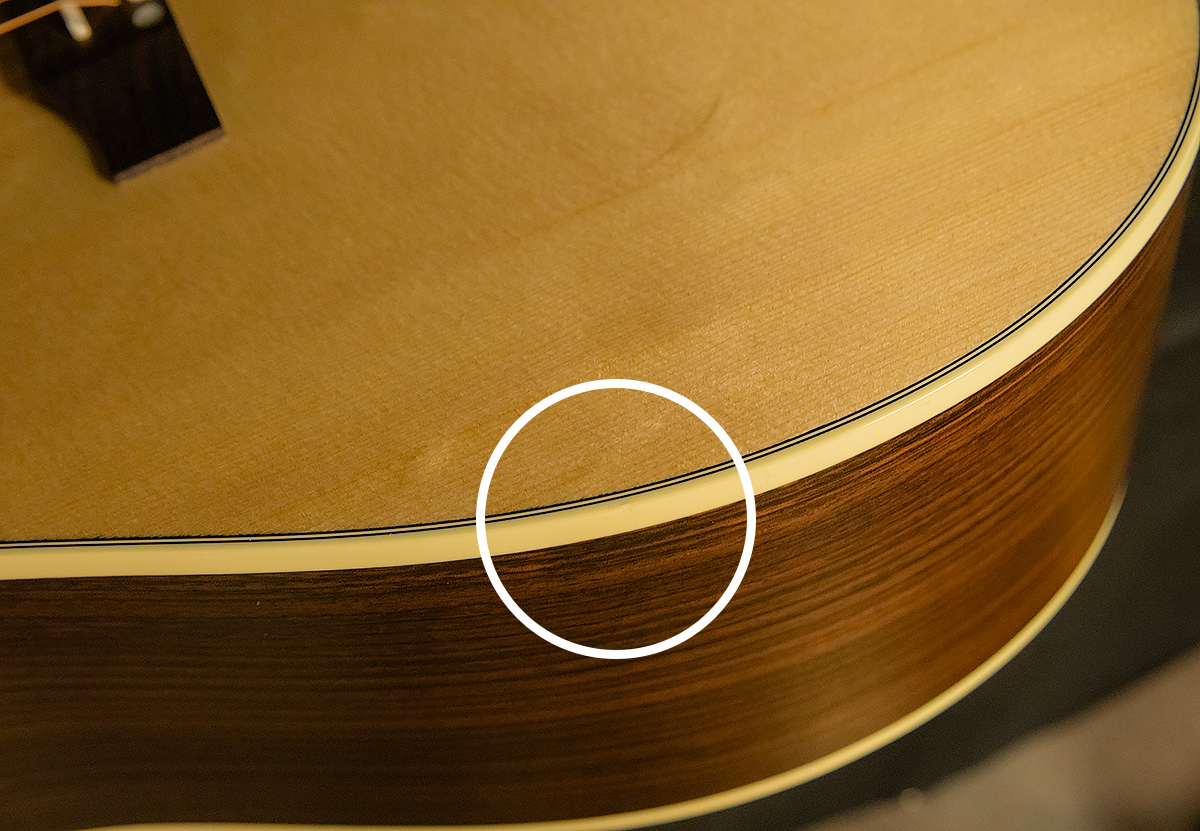This J-45 Studio Rosewood is in brand-new condition except for one teeny-tiny ding in the binding. It carries a full manufacturer's warranty, and it has no other cosmetic blemishes. If you don't mind this a little character mark, this is an awesome way to snag a killer Gibson at an excellent value!