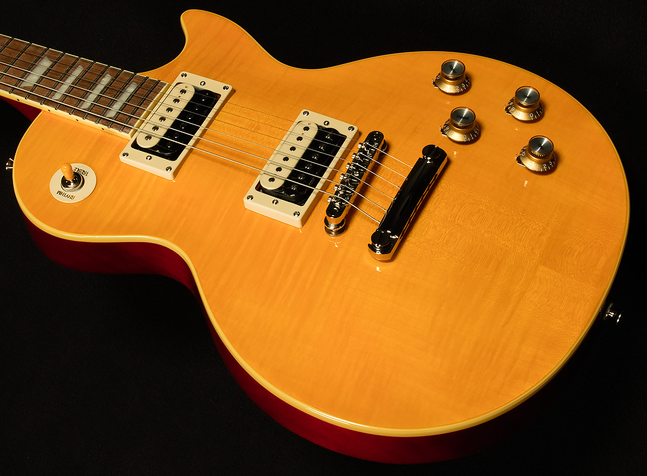 Epiphone and Slash are proud to present the Slash Collection. Part of the Inspired by Gibson Collection, it celebrates influential guitars Slash has used during his career, inspiring multiple generations of players around the world. Perfect for every stage and players of all levels, the Epiphone Slash Les Paul Standard features a mahogany body, maple cap with AAA flame maple veneer, a Graph Tech nut, Epiphone LockTone Tune-O-Matic bridge and Stop Bar tailpiece, and Slash’s personal touches including a C-shape neck profile, Epiphone Custom ProBucker pickups, color-coordinated hardware appointments, CTS potentiometers with Orange Drop capacitors, Epiphone strap locks, and a custom hardshell case. Exclusive to the Slash Collection are Slash’s “Skully” signature drawing on the back of the headstock and Slash’s signature on the truss rod cover.