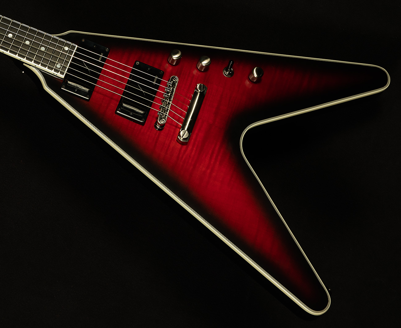 Take it to the stage, and all eyes will be on you, thanks to the AAA flame maple veneer top and sinister Aged Dark Red Burst finish, complemented by brushed black nickel hardware for the ultimate metal look. Includes a custom hardshell case.