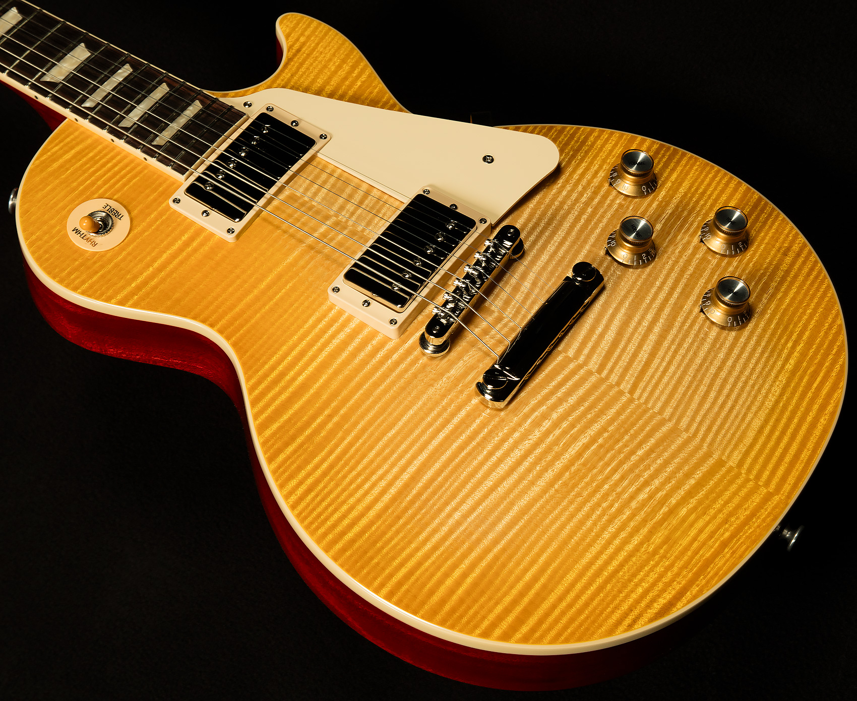 Wildwoodians, we are loath to contradict AC/DC, but it is NO LONGER a long way to the top if you wanna rock and roll, as long as the top you are seeking is made of exquisite maple. That's right–our friends at Gibson are building souped-up USA Les Pauls with jaw-dropping, outlandishly beautiful tops from the Custom Shop wood vault! If you let out a Ric Flair-esque "WOOOOOOOOO" upon learning that information, you're not alone, as there was much yelling, screaming, and open joyous weeping around the shop when we learned Gibson was building these bad boys. You see, a Custom Shop top on a USA instrument is simply unprecedented, and we love firsts here at Wildwood.