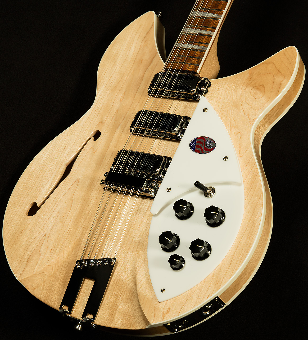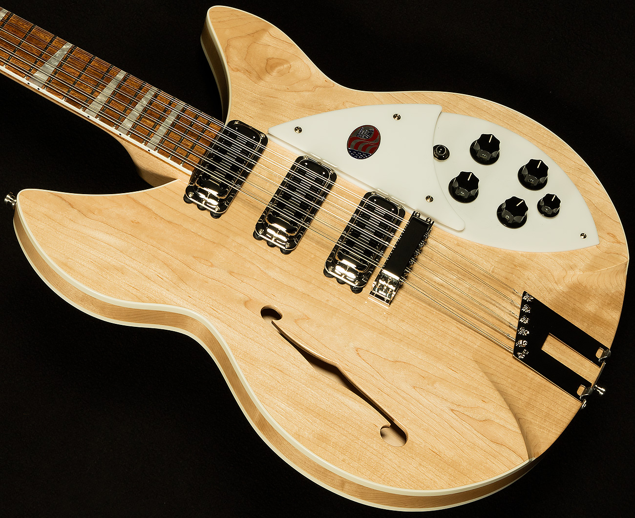 The 1993Plus sets itself apart from the pack in a variety of ways, but the most important one is the way it feels. Rickenbacker made the neck an eighth of an inch wider at the nut to accommodate players who need wider string spacing for intricate picking patterns, rounded off the neck heel to make it more comfortable to play on the higher frets, and made the neck out of two sturdy pieces of maple instead of one to promote greater stability. They've also dropped in three vintage-style toaster pickups to achieve authentic old-school sounds, and added in an x-bracing pattern to bring out a bit more warmth and roundness from the maple body.