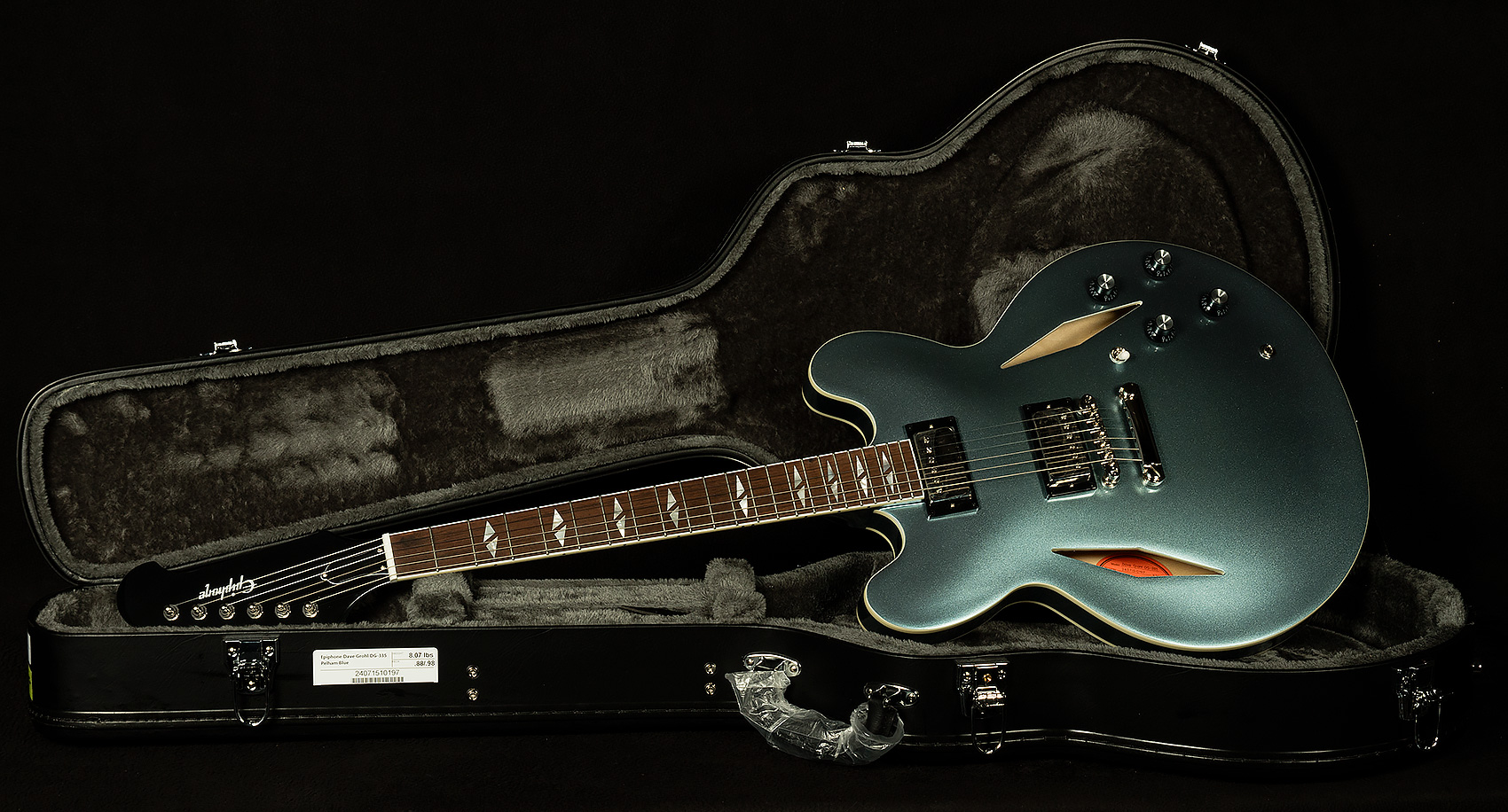First things first: when it comes to Foo Fighters stuff, you've got to nail the color and the shape, and our friends at Epiphone NAILED the look. It has the iconic diamond F-holes, split diamond inlays and 6-in-line headstock,of the original, and the Pelham blue finish is positively resplendent. It's definitely an eye-catching guitar, but it will also capture eardrums because it comes with Dave Grohl's preferred pickups, Gibson Burstbuckers. These pugnacious PAF-inspired humbuckers deliver plenty of muscle, bite, and snarl along with the classic humbucker richness, but they also have an outsanding capacity for warmth, dynamics, and nuance. And, the pleasantly-chunky elliptical C neck profile has an addictive handfeel that makes this guitar almost impossible to put down. To top it off, it comes with a Dave Grohl Epiphone hardshell case.