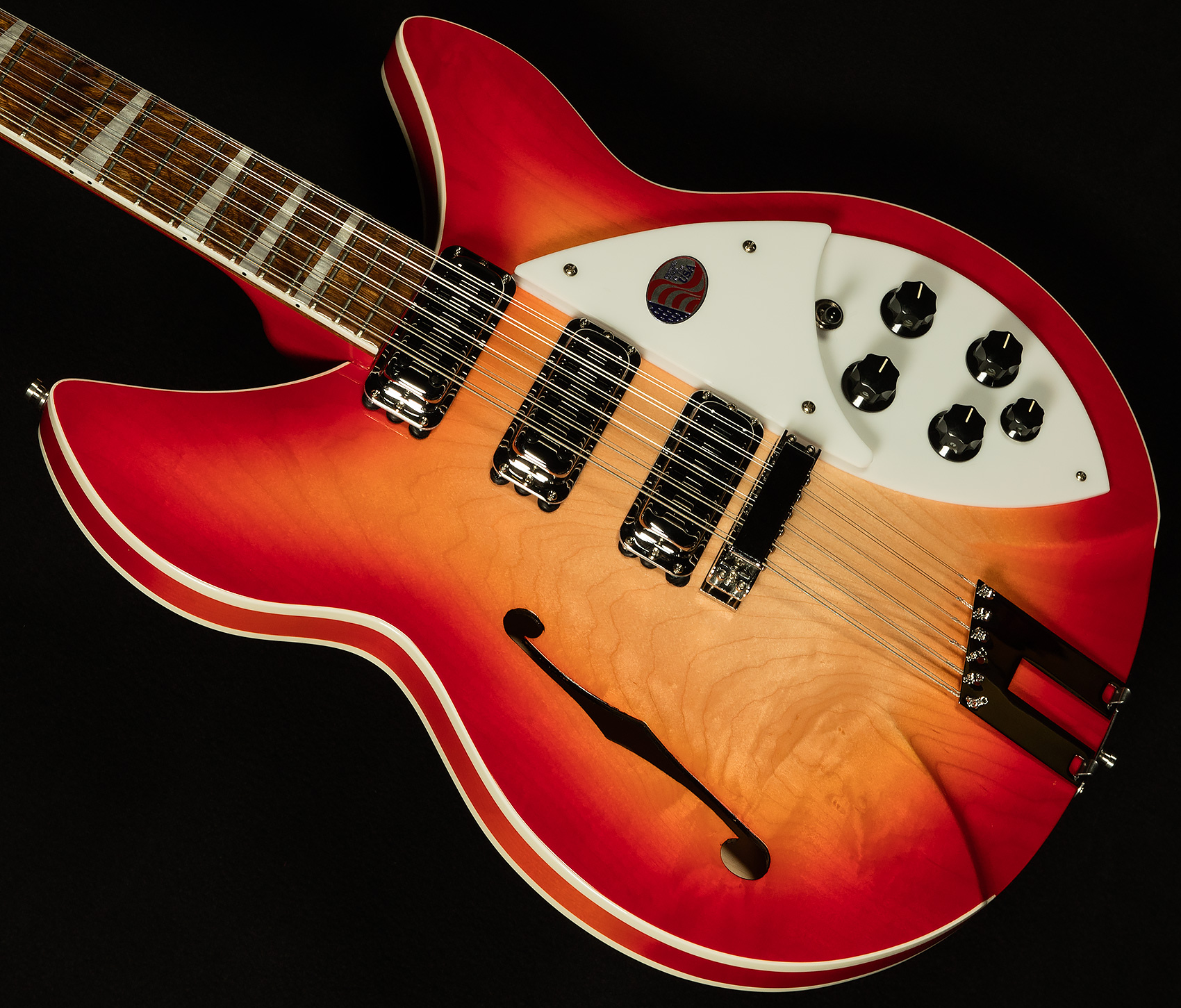 The 1993Plus sets itself apart from the pack in a variety of ways, but the most important one is the way it feels. Rickenbacker made the neck an eighth of an inch wider at the nut to accommodate players who need wider string spacing for intricate picking patterns, rounded off the neck heel to make it more comfortable to play on the higher frets, and made the neck out of two sturdy pieces of maple instead of one to promote greater stability. They've also dropped in three vintage-style toaster pickups to achieve authentic old-school sounds, and added in an x-bracing pattern to bring out a bit more warmth and roundness from the maple body.