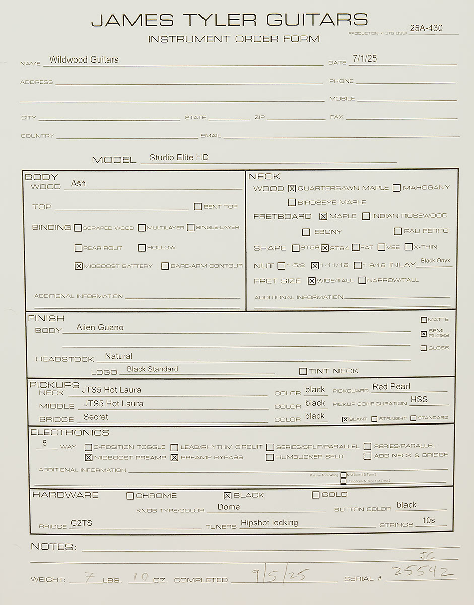 Imagine an exclusive club filled with guitar legends. Some are players like Michael Landau, Steve Lukather, David Williams, Abe Laboriel, Dann Huff, and Buzz Feiten–guys who are your favorite player’s favorite players, the session guys whose riffs and licks are more famous than their names. Some of them are so famous that they go by one name, like Prince. John Fogerty, Steve Howe, Elvis Costello, Walter Becker, and George Lynch are there, too. But, it’s not an elitist affair, even though the players are of an elite caliber. You don’t need a special knock or a password or knowledge of an alleyway entrance to get into this secret gathering–just a James Tyler guitar, because it’s the James Tyler Owner’s Club. Though the clubhouse (sadly) isn’t real, James Tyler’s guitars do carry an air of mystique and secrecy about them–not because they’re elitist, but because James Tyler simply doesn’t do much promotion. He lets the guitars do the talking for him. Nevertheless, when you see someone with a James Tyler guitar slung over their shoulder, you know that they belong to the select echelon of guitar players who are in the know.