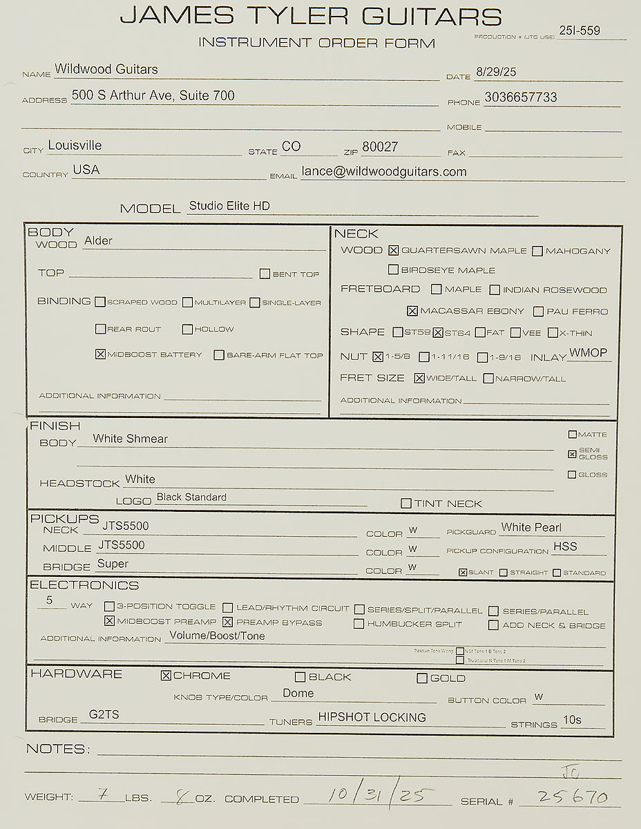 True to form, James moved his shop to a building in North Hollywood with no signs of any kind that would even provide a hint that it was James Tyler’s HQ. But, greatness can’t escape notice for long, and soon there was a steady stream of renowned L.A. musicians trickling into his shop.