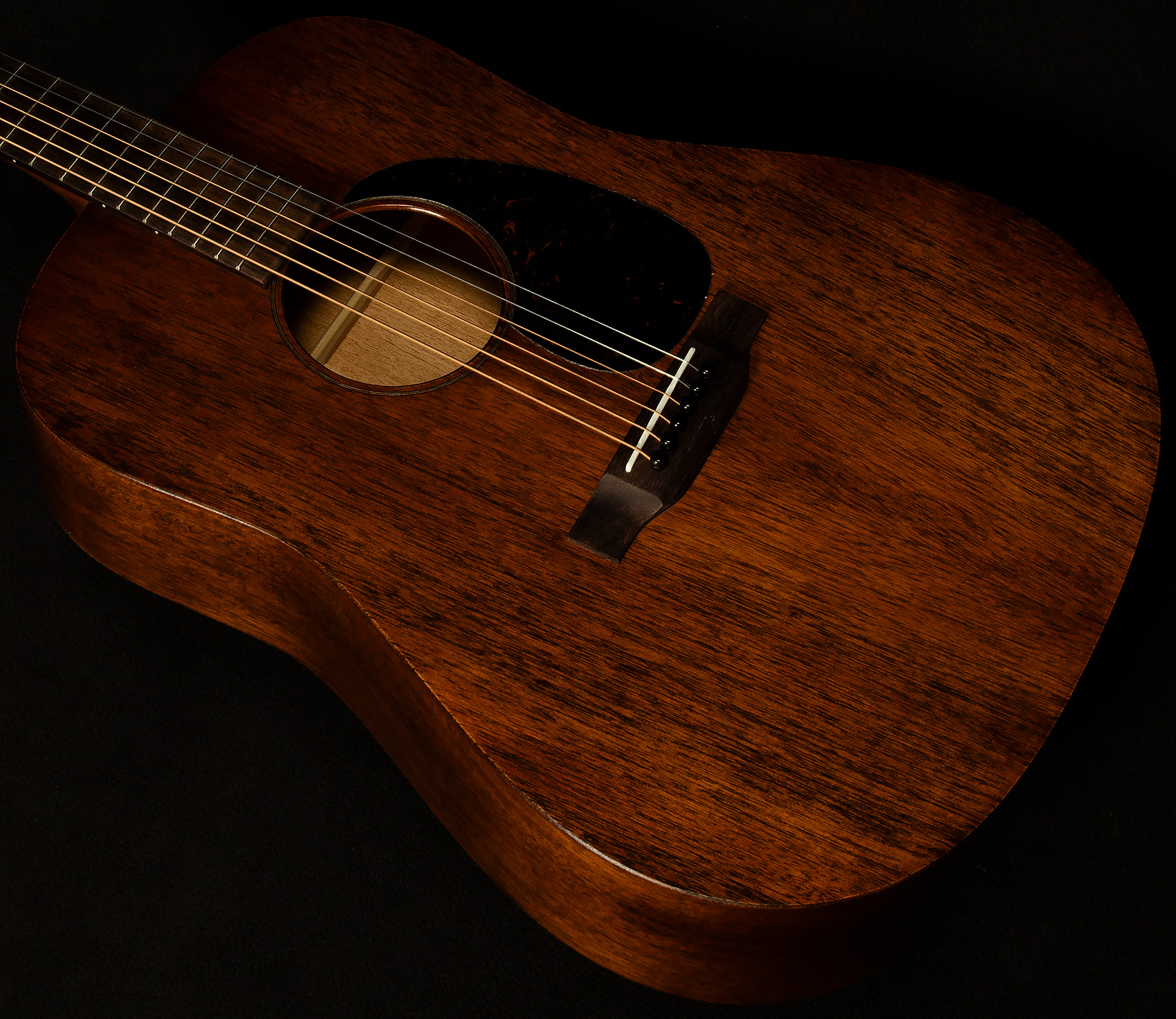 Mahogany's reputation for warmth and woodiness can cause some guitar players trepidation at the looming threat of muddiness. However, clarity-conscious players need not worry, because the D-15M sidesteps the dreaded muck. Mahogany's inherent harmonic dryness keeps the sound quite focused. The D-15M has a sculpted frequency response profile that emphasizes the fundamentals with great force. So, each note on each string of your favorite fancy jazz chord sings out clearly.
