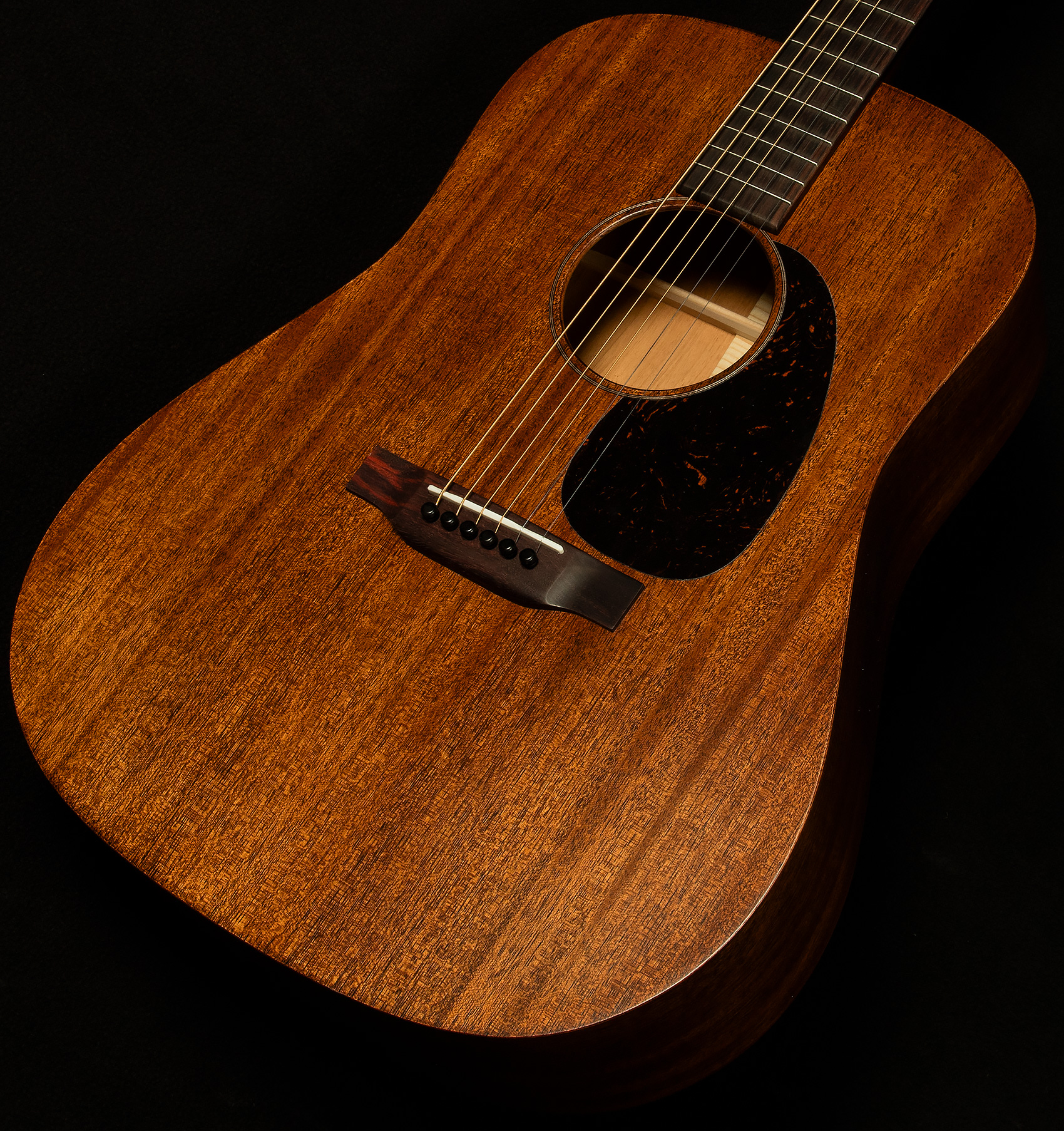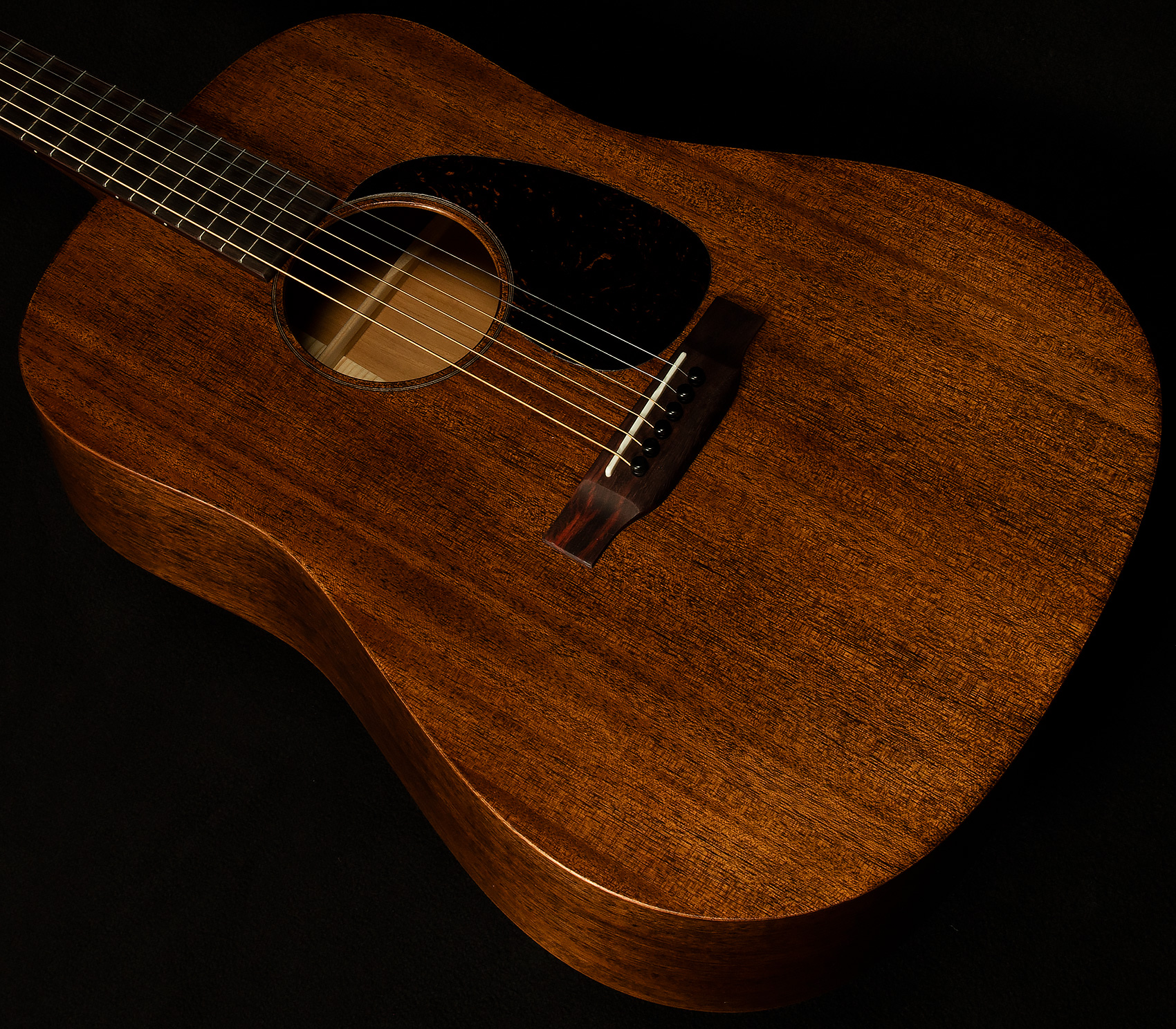 Speaking of delightful things, let's talk mahogany. Mahogany is most often seen singing backup to a spruce top in the world of acoustic guitars, but here it makes the most of its time in the spotlight. This classic tonewood is known for its fast response time, warmth, roundness, depth, and dryness, and the D-15M exhibits all of these characteristics in spades. In fact, it's quite easy to get lost in the rapture of the deep when playing with one of these guitars! Mahogany's welcoming warm chocolate-y bass response, rich woody midrange, and transparent, round trebles create a sonic atmosphere that invites your fingers to wander the fretboard for days.