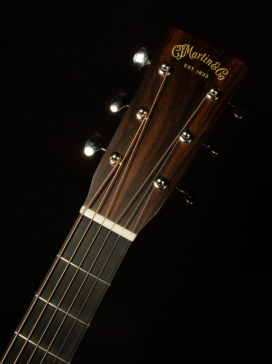 This means a few things: first, these 000-18s can simply get louder than other acoustic guitars; second, they maintain outstanding clarity at higher volumes, so you can dig in without the sound breaking up; third, because they have more volume on tap, they have a greater dynamic range. Adirondack spruce also produces a powerful fundamental--which gives these guitars a warm, woody tonality--and they impart an articulate, percussive quality to the attack. The dynamic range makes them wonderful for nuanced fingerpicking, while the headroom allows them to do a convincing impersonation of a dreadnought when you dig in.