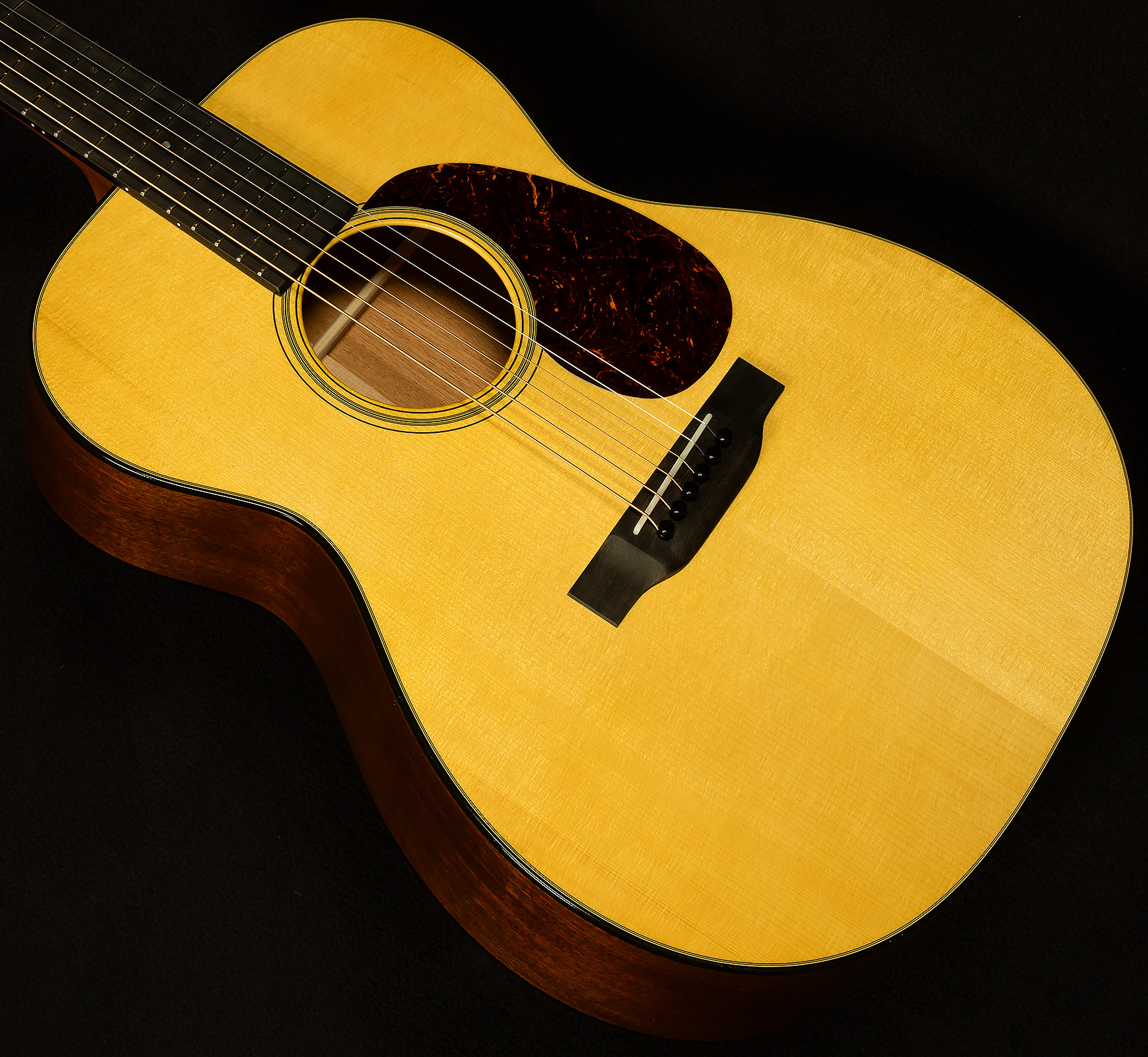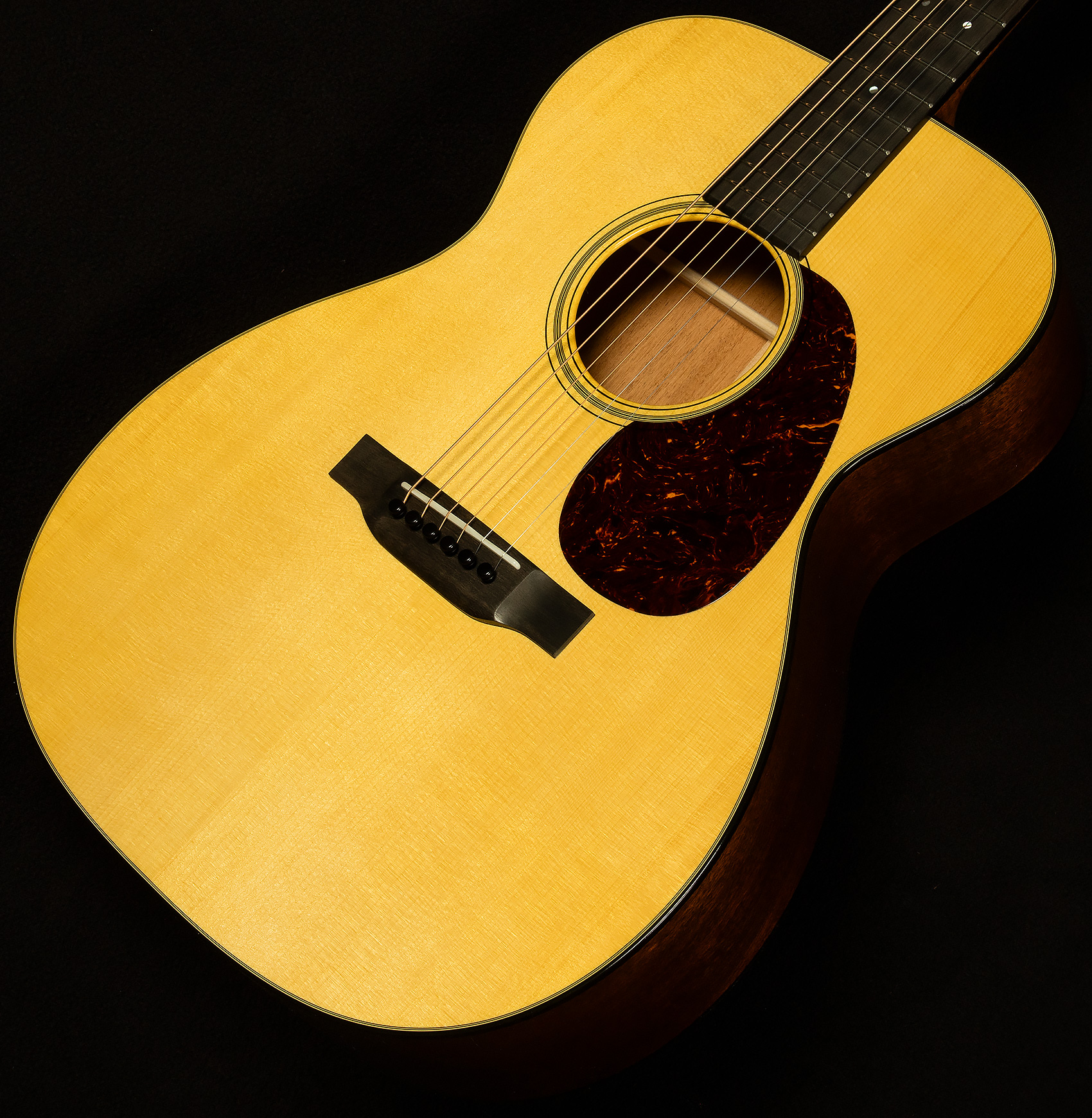 This means a few things: first, these 000-18s can simply get louder than other acoustic guitars; second, they maintain outstanding clarity at higher volumes, so you can dig in without the sound breaking up; third, because they have more volume on tap, they have a greater dynamic range. Adirondack spruce also produces a powerful fundamental--which gives these guitars a warm, woody tonality--and they impart an articulate, percussive quality to the attack. The dynamic range makes them wonderful for nuanced fingerpicking, while the headroom allows them to do a convincing impersonation of a dreadnought when you dig in.