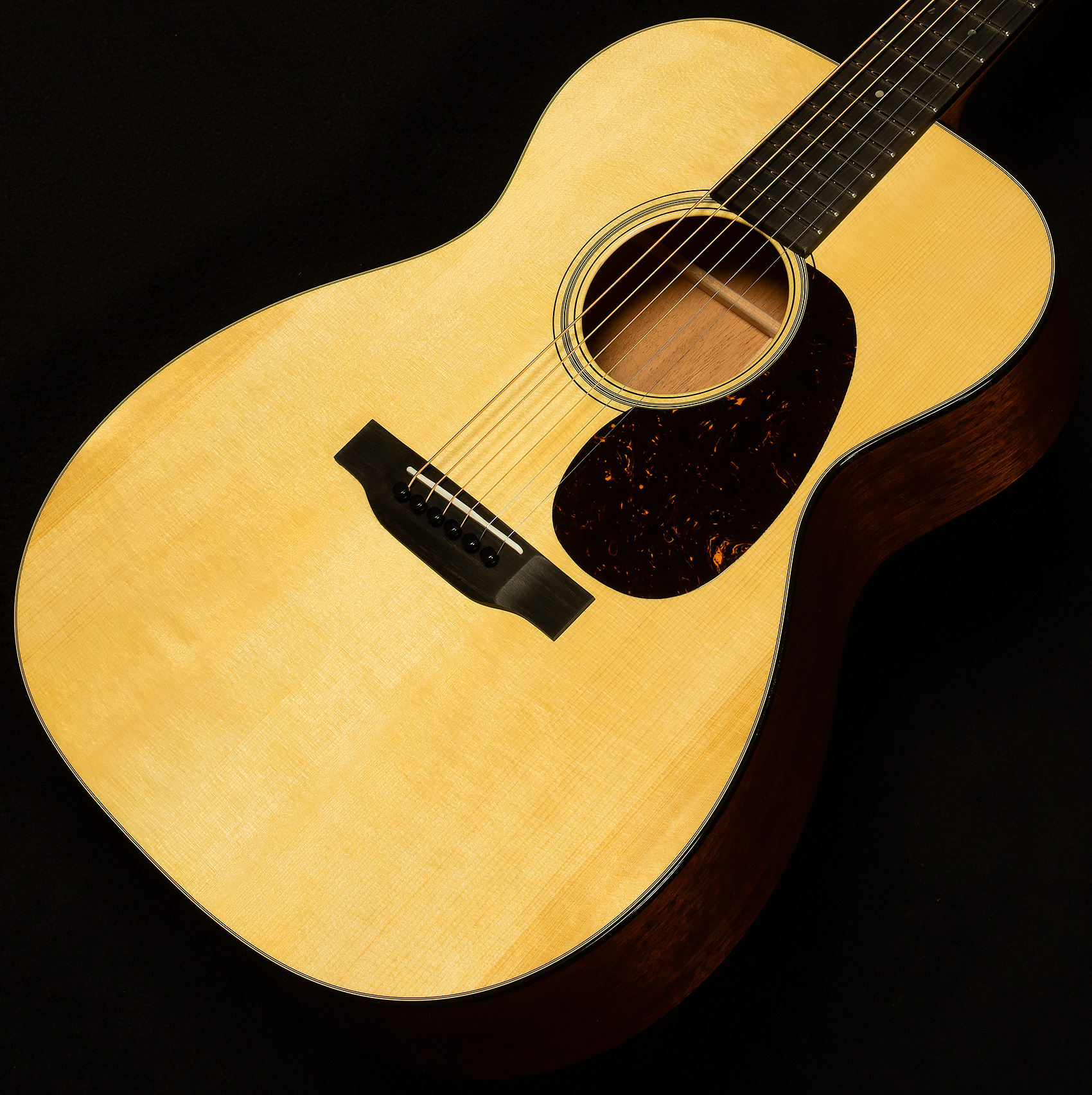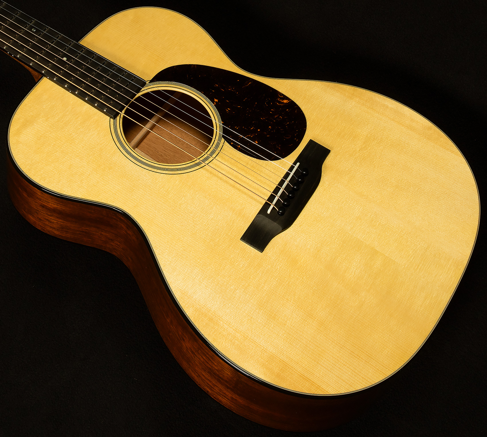This means a few things: first, these 000-18s can simply get louder than other acoustic guitars; second, they maintain outstanding clarity at higher volumes, so you can dig in without the sound breaking up; third, because they have more volume on tap, they have a greater dynamic range. Adirondack spruce also produces a powerful fundamental--which gives these guitars a warm, woody tonality--and they impart an articulate, percussive quality to the attack. The dynamic range makes them wonderful for nuanced fingerpicking, while the headroom allows them to do a convincing impersonation of a dreadnought when you dig in.