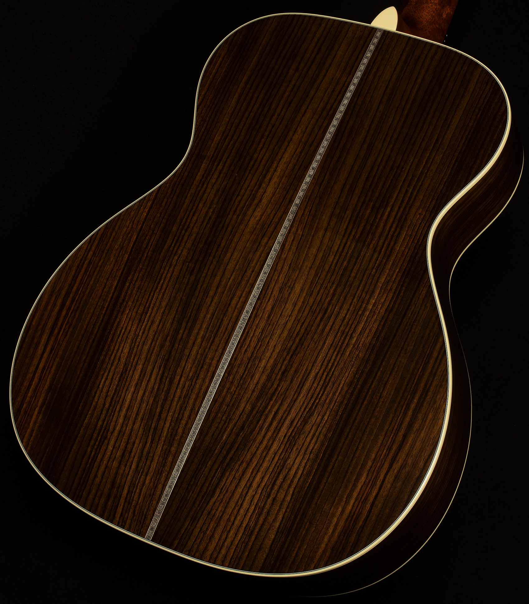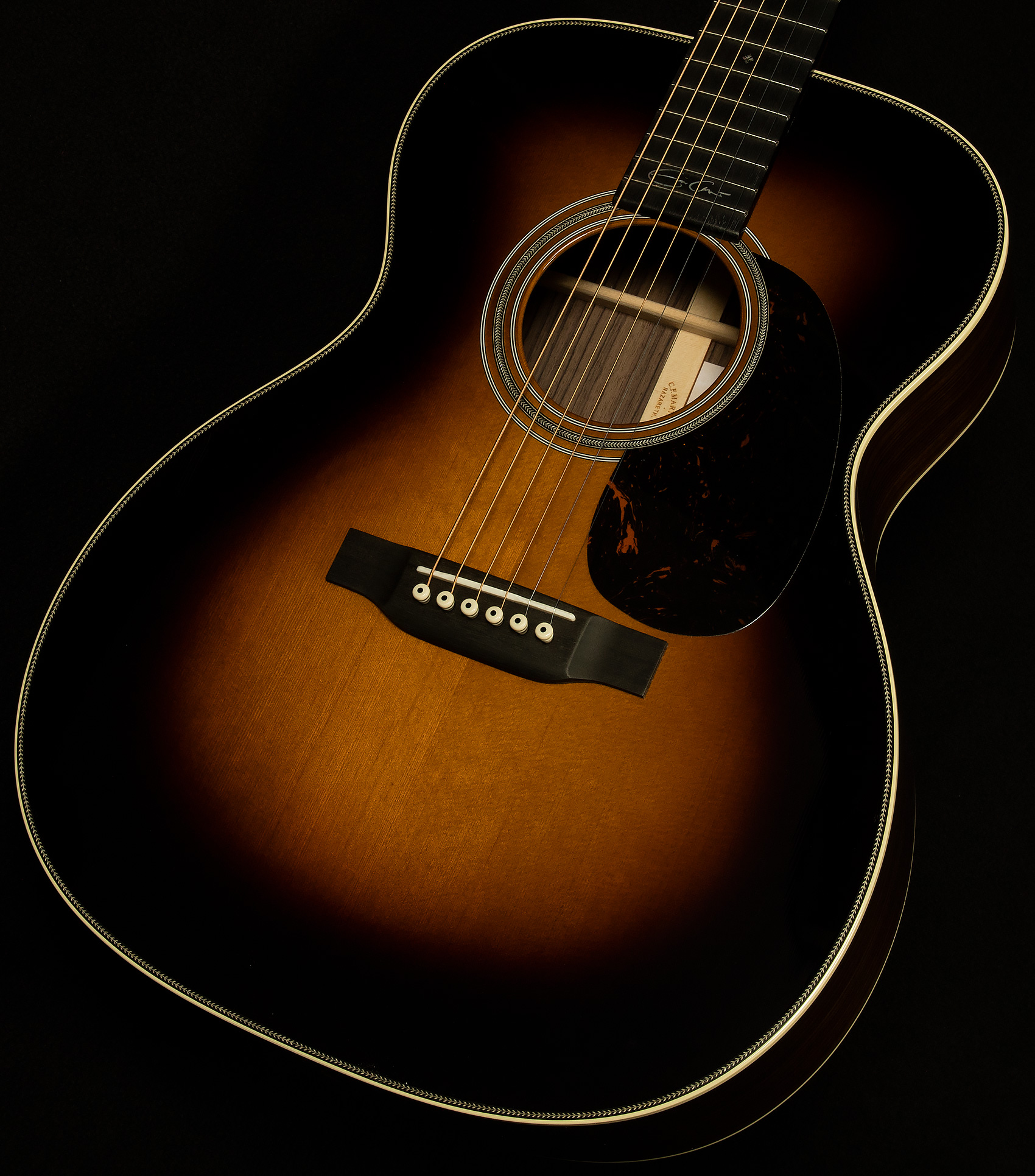 First things first: Sitka spruce and East Indian rosewood are a magical combination of woods, and nowhere is that more apparent than the 000-28EC. The spruce top gives it a balanced, sunny tone with a good blend of fundamental and overtones along with tons of projecting power. The East Indian rosewood back and sides add warm, rich deep basses and lush, glassy, sparkling highs to the 000-28ECs tonal equation. Together, they give the 000-28EC a robust sound that fills the room without sounding muddy or tubby in the slightest. As such, it stays supremely balanced and articulate. It's a tone that works beautifully in just about any musical context: fingerstyle, strumming, in a band, or solo accompaniment.