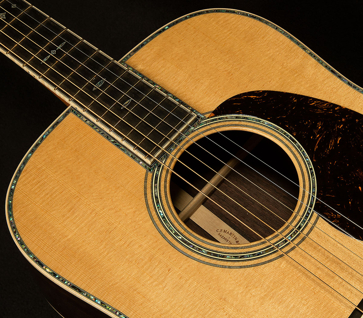 Though these guitars certainly have vintage tone in spades, every other feature is designed to optimize the playing experience. The brand-new Vintage Deluxe neck profile has a slightly asymmetrical shape that fits in your hand perfectly all the way up and down the neck. Speaking of new stuff, the carbon fiber bridge plate gives you extra volume and projecting power without adding any extra weight that would dampen the top's resonance. Lighter is always better, so Martin used a titanium truss rod, which also helps out the guitar's sustain and resonance. And, Martin has replaced the typical wooden bridge pins with Liquidmetal pins, which are lighter and promote greater energy transfer. It all adds up to a louder, more resonant acoustic that plays like an absolute dream.