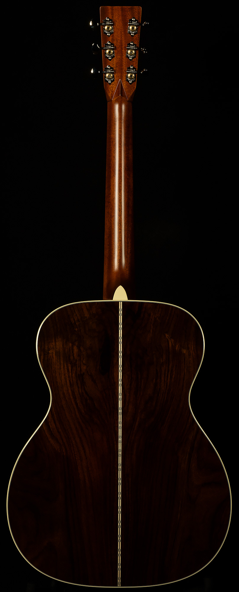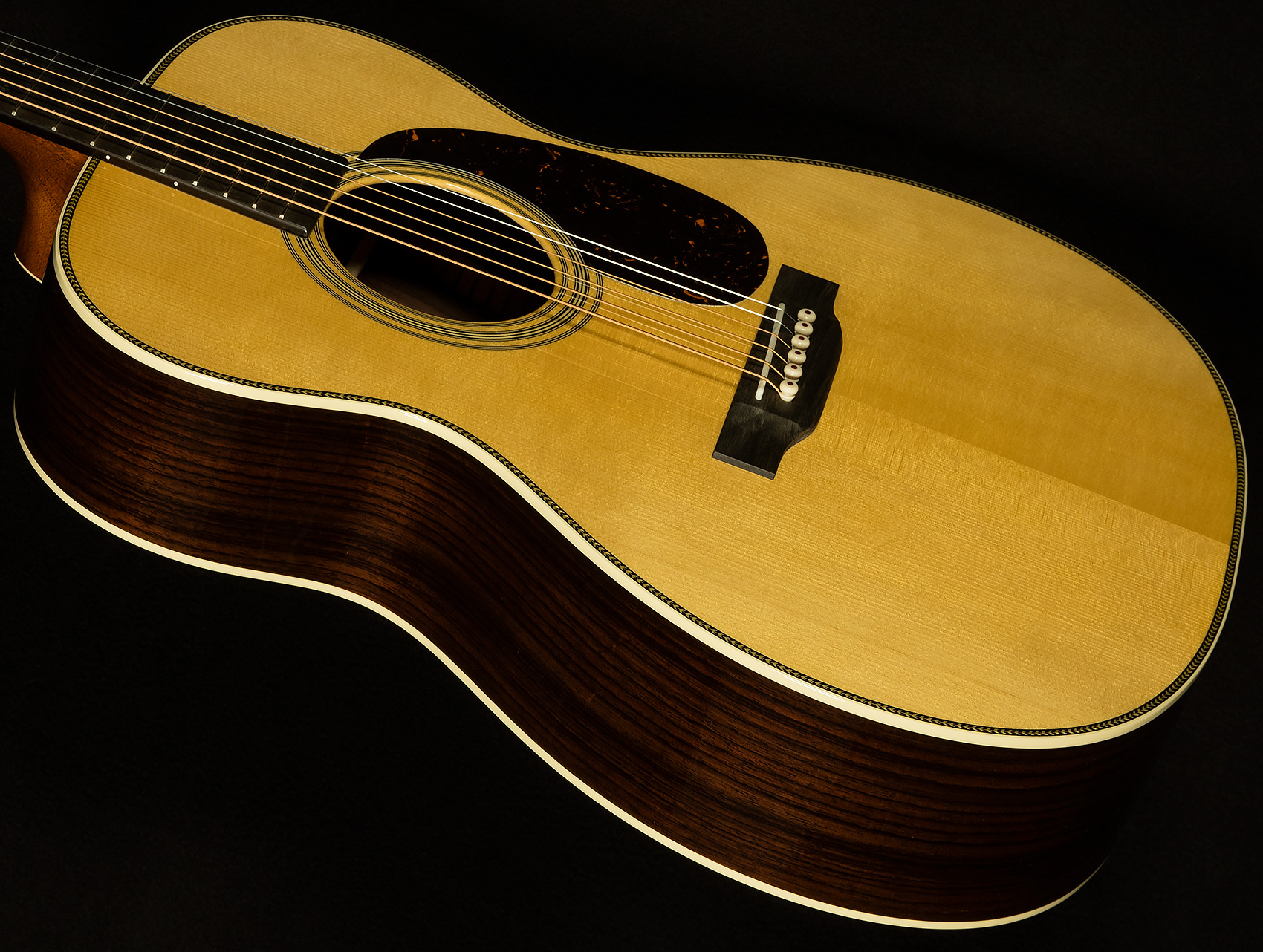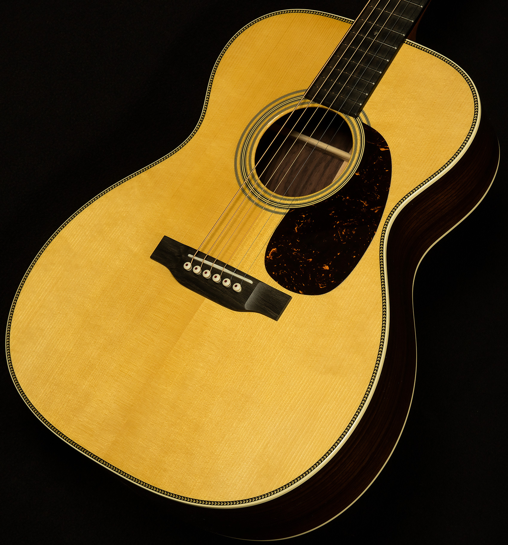 Wildwoodians, this Custom Shop 000-28 is the sort of guitar that injects your day with positive energy and puts a smile on your face. To give you an idea of the level of joy it brings, one minute I was quietly strumming some chords, and the next my coworker and I were singing Bowie "Space Oddity" at top volume while doing our best Neil Young impersonations. Why? It's complicated. Speaking of complexity, part of the reason we were acting a fool was the delightful bouquet of overtones this guitar produces, likely due to its Carpathian spruce top. Though it has a rich, complex voice, it also is highly articulate, and has excellent balance.