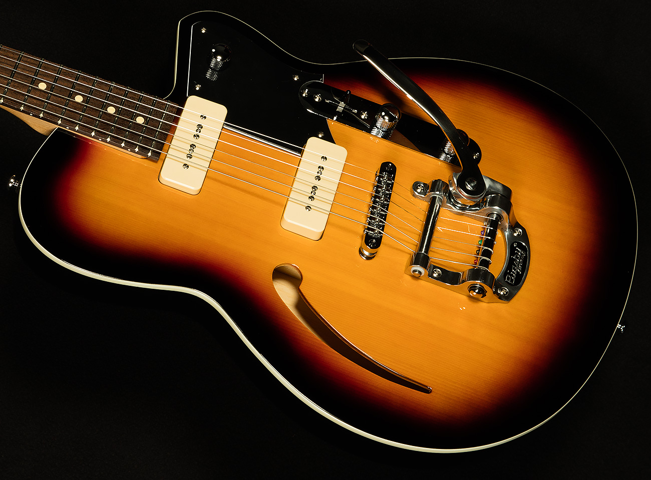 | Pickups | 2 Reverend Alnico 5 P-90s |