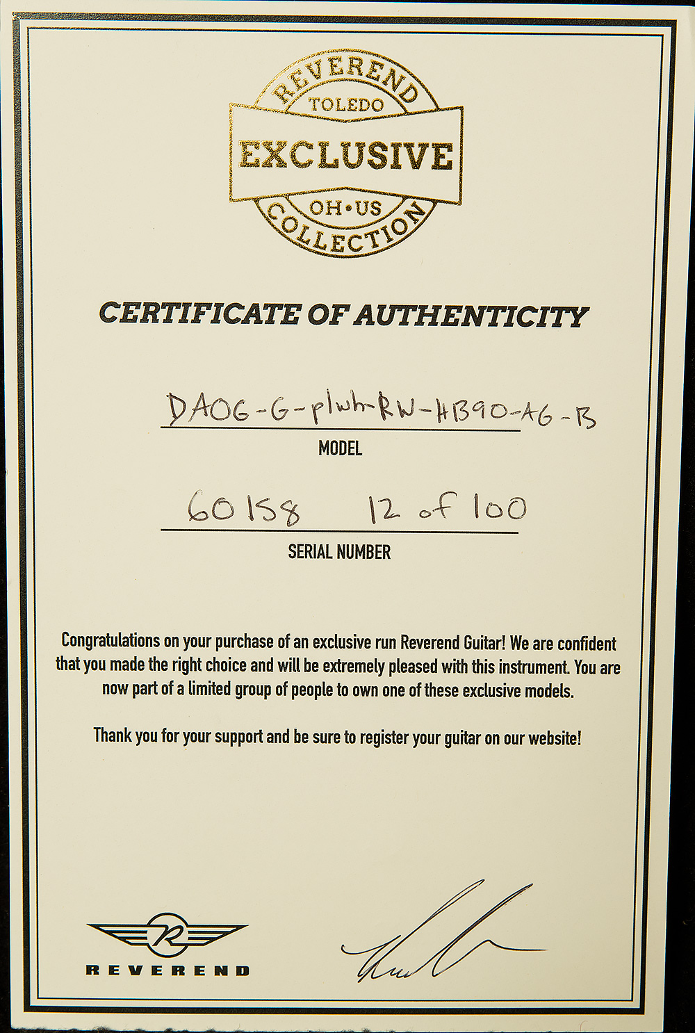 | Case | Reverend Cases Are Sold Separately But You Can Add One to Your Order By Checking the Box Right Above the "Add to Cart" Button |