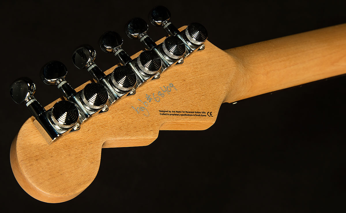 Everything else about this guitar is designed to make a working musician's life easy. It has Reverend's signature Boneite nut and pin-lock tuners for ridiculously stable tuning, a dual-action truss rod with headstock access for easy maintenance, and a stoptail bridge for easy string changes and intonation. Also, it feels great in your hand! The medium oval neck is quite comfortable (I LOVE the 12" radius!), and the 0.110" wide x 0.050" high frets feel as buttery as a Thanksgiving roll.