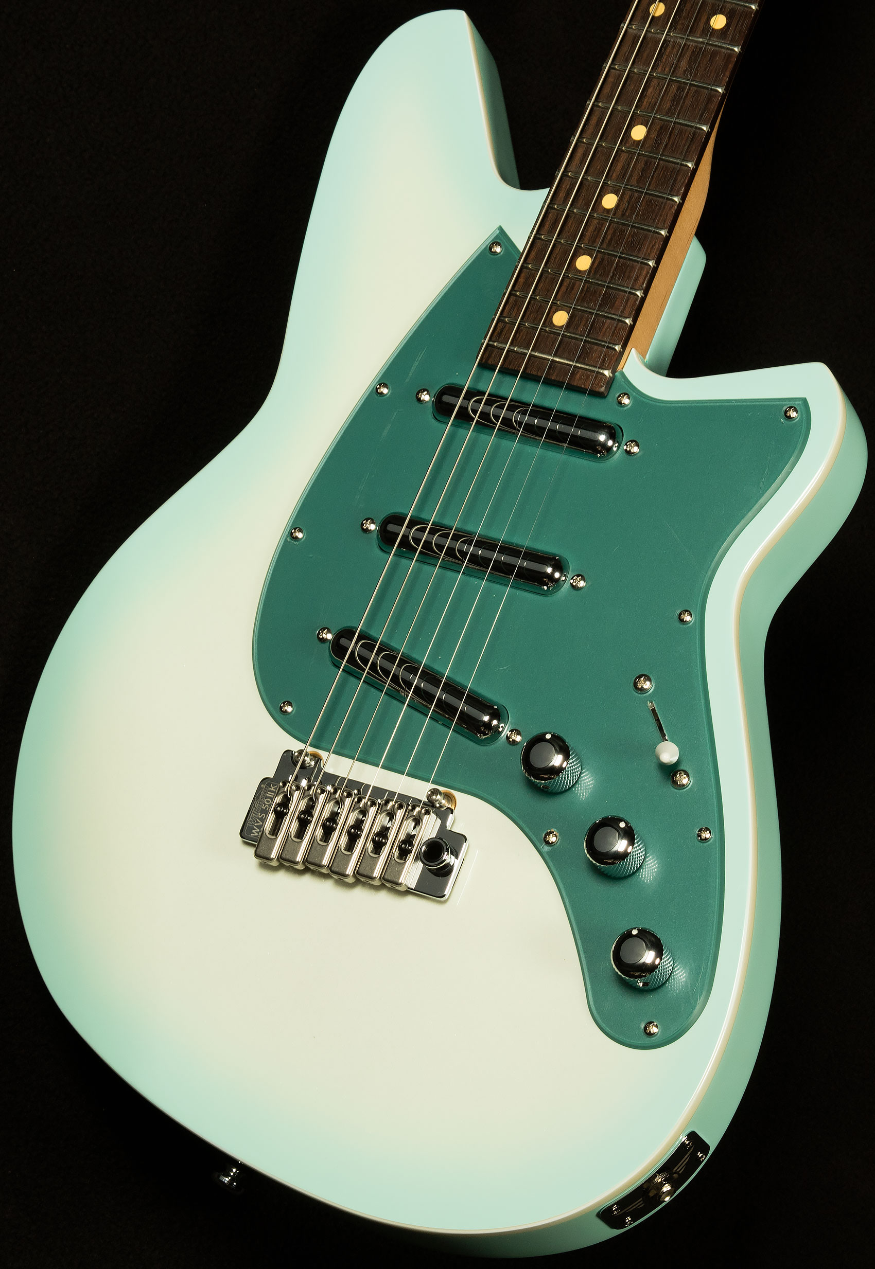 The same principle applies to many aspects of this guitar's design. It has a six-bolt neck plate instead of the usual four, so the neck is much less likely to move. It's also at a slight angle, which makes it easier to access the upper frets. Speaking of which, the neck is made of roasted maple, which has a lower moisture content, so it's less likely to move with humidity (and it acts as a wooden tuning fork of sorts, boosting the guitar's sustain and resonance a little bit). For those who love to whammy it up, it has a Wilkinson WVS50 IIK Tremolo, which is as bulletproof and stable as they come. Speaking of tuning stability, the Boneite nut and pin-lock tuners make tuning (and staying in tune) a breeze. To top it off, it has boutique-quality pots and caps, which ensure each guitar has reliable, consistent electronic components. Basically, all of that makes each Reverend supremely reliable, capable of withstanding abuse night in and night out.