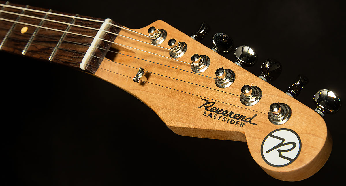 Furthermore, the chambered body adds a bit of acoustic-like touch sensitivity to the sonic equation. When you pick this guitar up, the medium-oval neck profile fits your hand like your favorite pair of well-worn, comfy slippers, so it plays like a dream, too! Speaking of which, the Eastsider also comes equipped with a 10-14" compound radius allows for easy chording down low and effortless bending up high. The Boneite nut and pin-lock tuners ensure that you don't constantly have to retune live, and the dual-action truss rod makes maintenance a breeze. It's versatile, it plays great, and works well in just about any style of music while retaining a unique voice. The fine folks at Reverend have outdone themselves with this Eastsider, and we couldn't be happier to offer it to our exceptional customers.