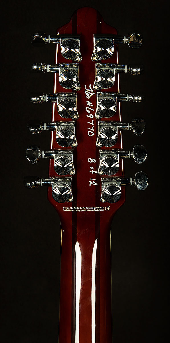 The most important of these appointments is the twelve-saddle bridge. Having the ability to tweak each string allows for precise intonation, which means that each every chord you play will be more in tune. That level of accuracy ensures that this twelve-string will always chime like a clocktower bell! Speaking of tuning, the Boneite nut and Reverend’s pin-lock tuners give this guitar fantastic tuning stability, so you won’t have to spend forever tuning in between songs.