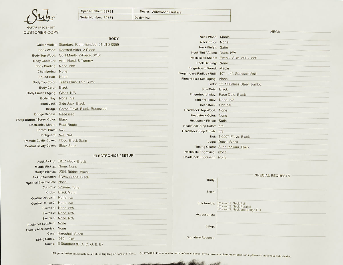The Suhr Standard Thin Burst Limited Edition, a masterpiece of craftsmanship and performance, built with precision in Lake Elsinore, California. This guitar features Suhr’s iconic Standard body shape, crafted from roasted alder and topped with a stunning quilt maple top, all highlighted by a striking Thin Burst finish that enhances the natural beauty of the wood. With no scraped binding, the sleek, uninterrupted edge creates a modern and sophisticated aesthetic that sets this instrument apart.