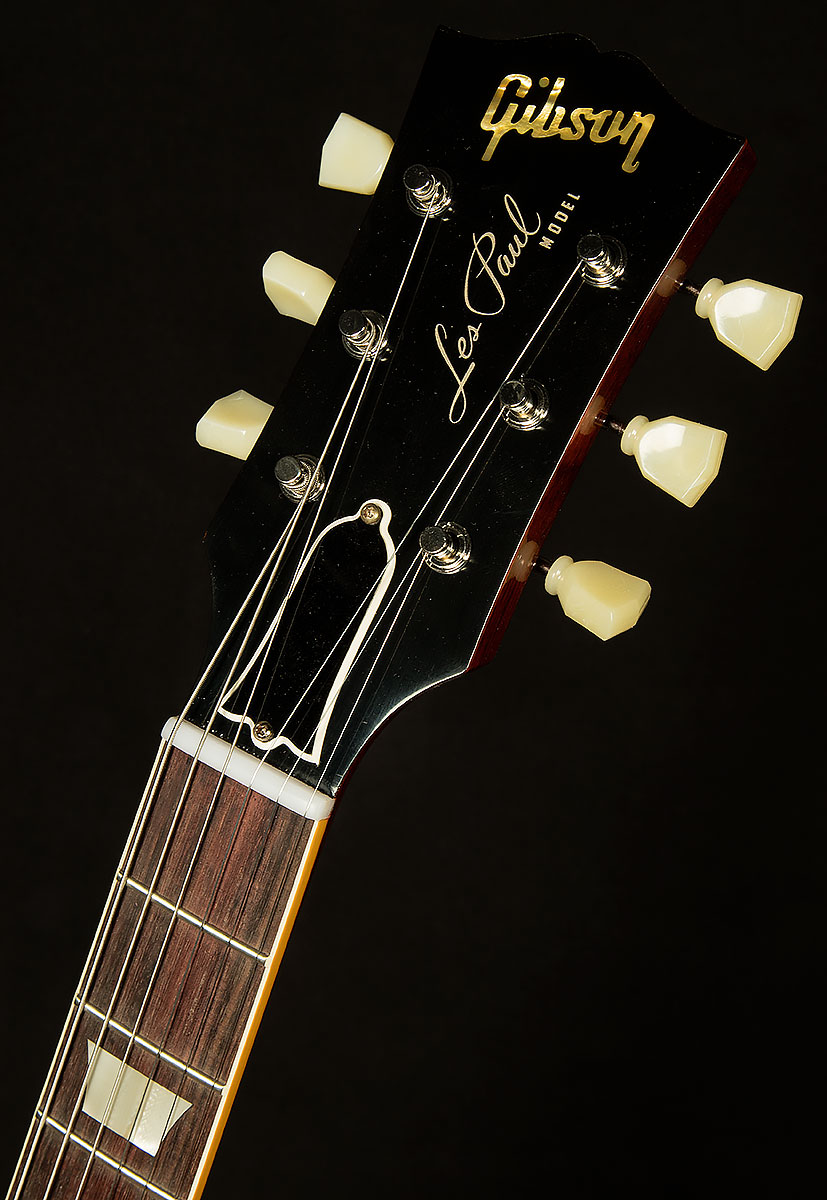 In our never-ending quest for total vintage accuracy, we asked the Custom Shop to put aged plastics on our VOS Wildwood Spec '59s. They obliged, and the resulting hardware looked perfect. It may seem like a small detail, but it really does make you feel like Gibson pulled these guitars from a time capsule.