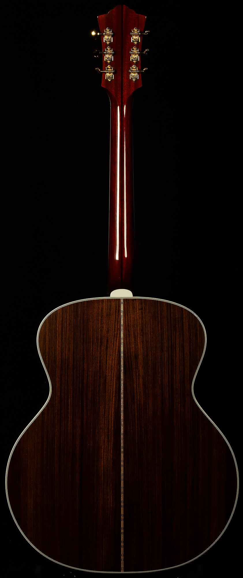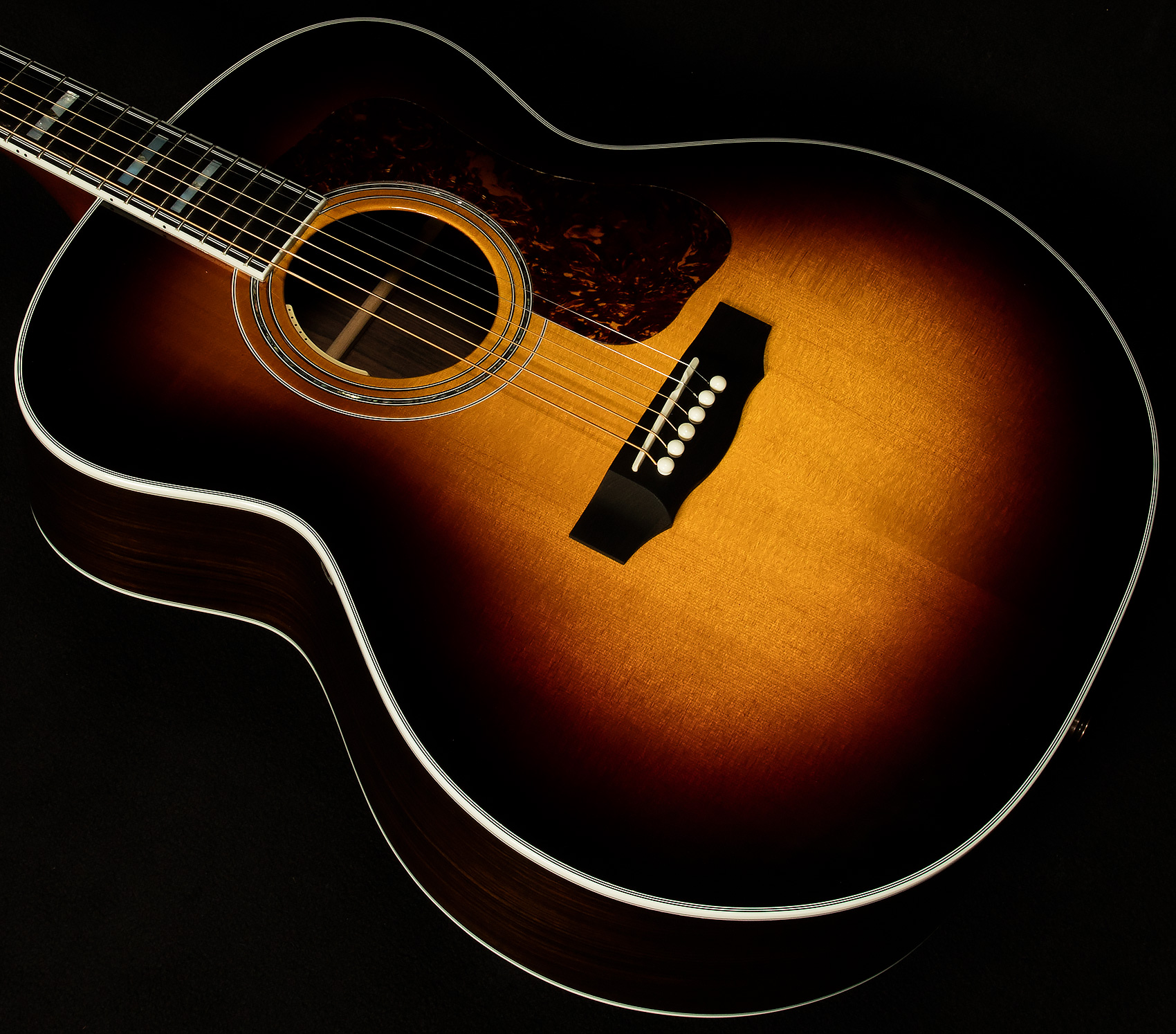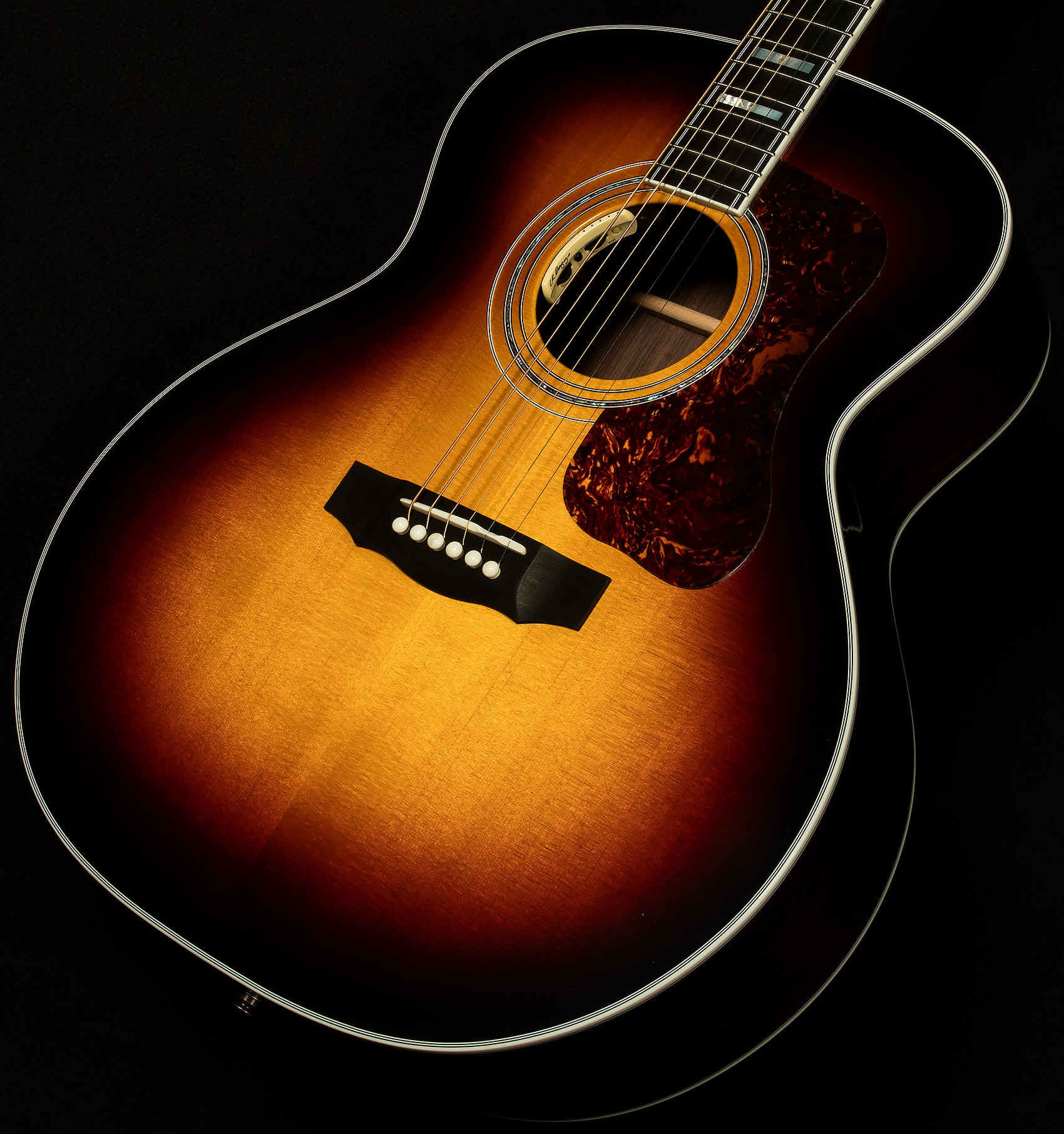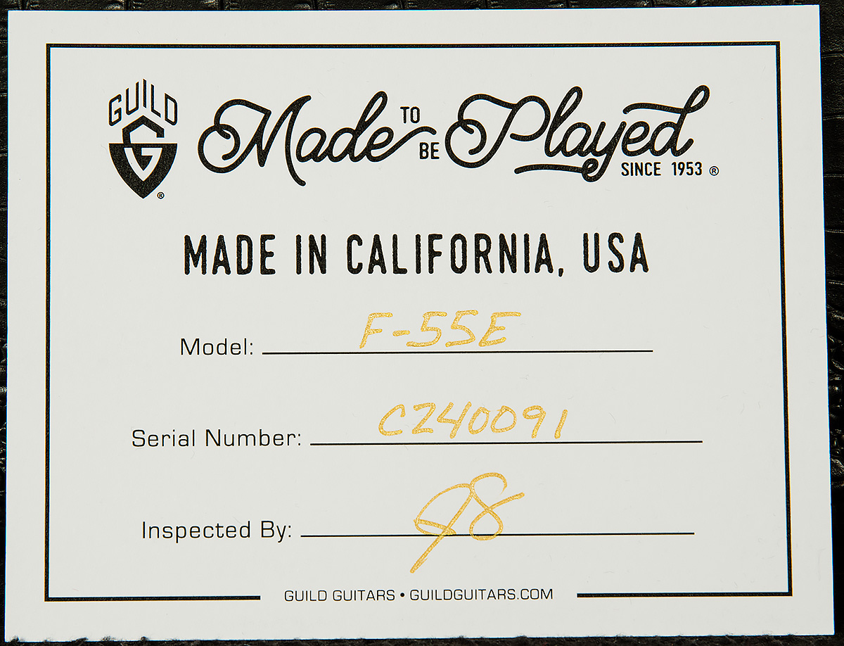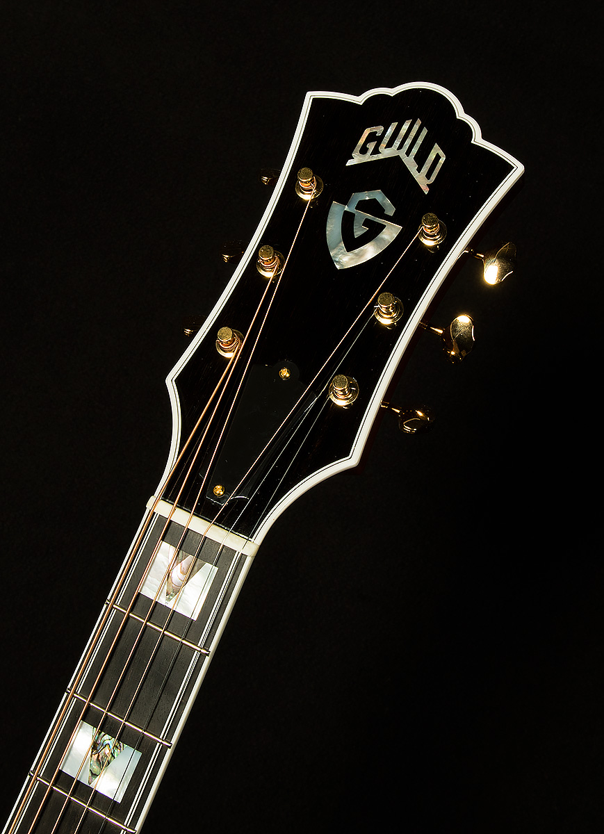Elegant cosmetic appointments include the classic Guild V-block inlays, gold Gotoh hardware, and a beautiful nitrocellulose lacquer finish. Exceptional build quality and premium specifications make it a worthy heir to the historic Guild jumbo legacy.