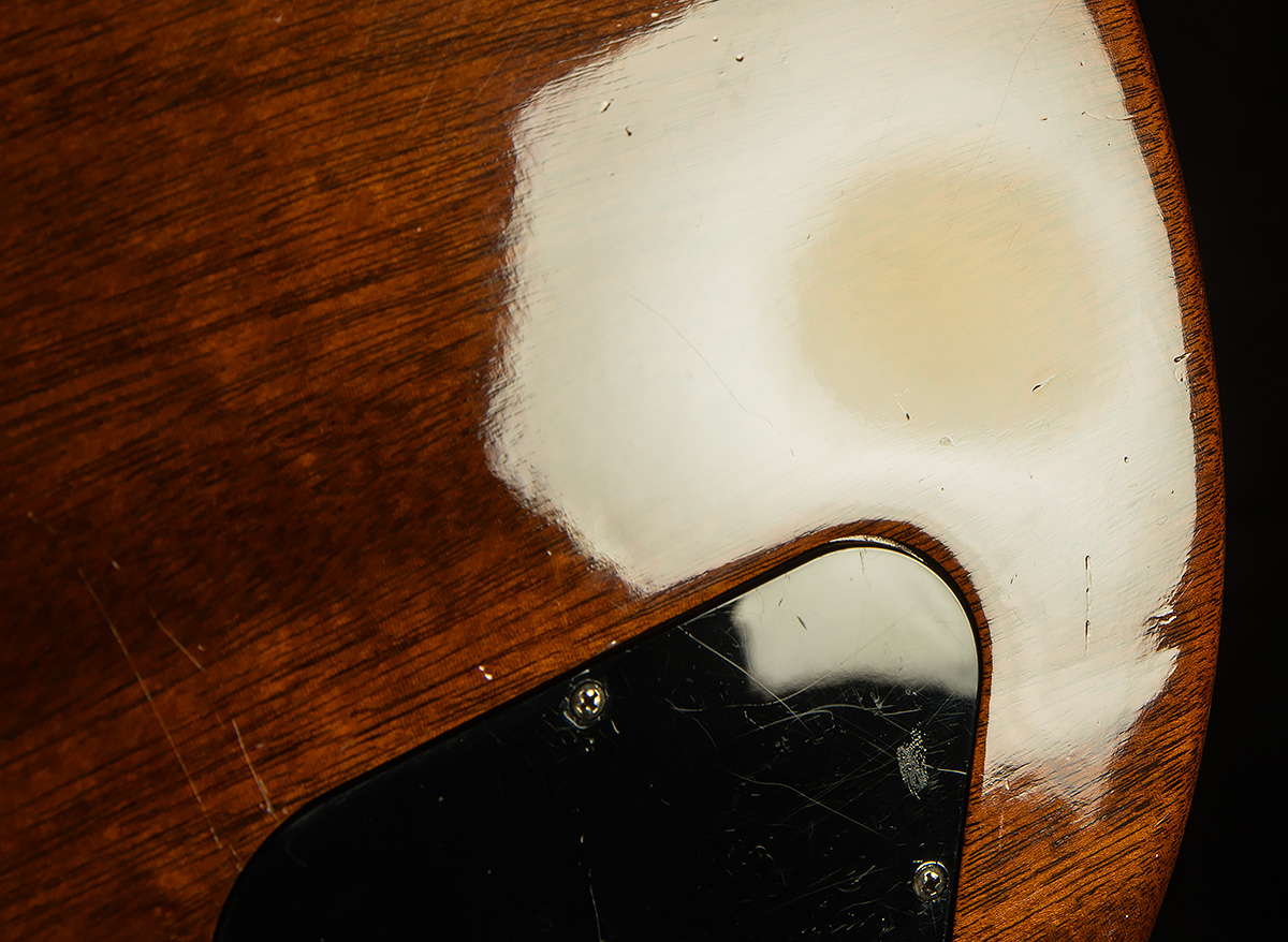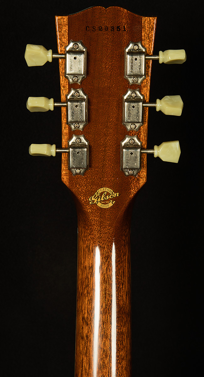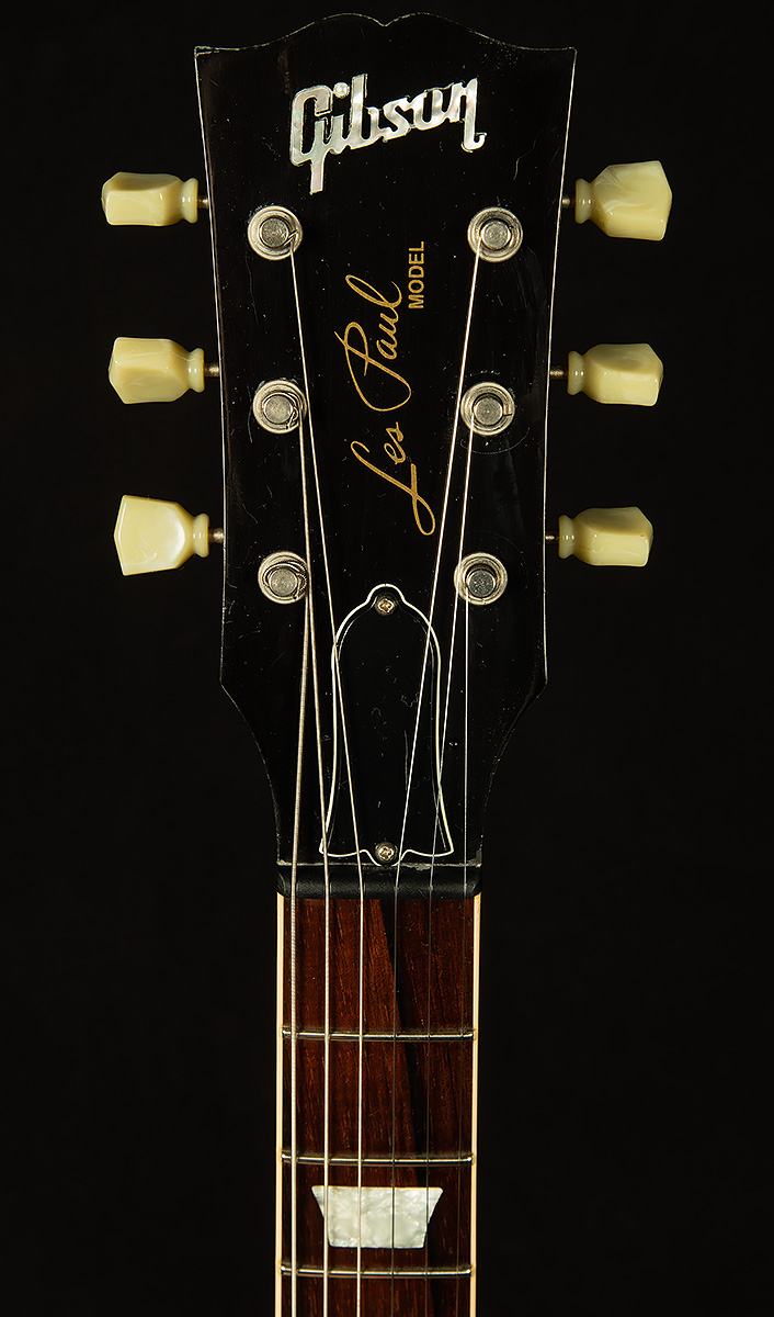 This Class 5 LP has undergone a few key upgrades, and it has clearly been played often and taken care of lovingly. It shows light playwear throughout its finish (scratches, dings, tarnished hardware, etc.), but there are no major cosmetic flaws. A previous owner replaced the nut with a Graphtech-style aftermarket part, and the original pickups have been swapped for new Custombuckers--a significant upgrade! The original pots and caps have also been switched out for Gibson pots and Orange Drop caps, another nice upgrade. Finally, the knobs are new. If you don't mind some honest playwear, this is a chance to snag a truly monster Les Paul with tons of upgrades at an awesome value!