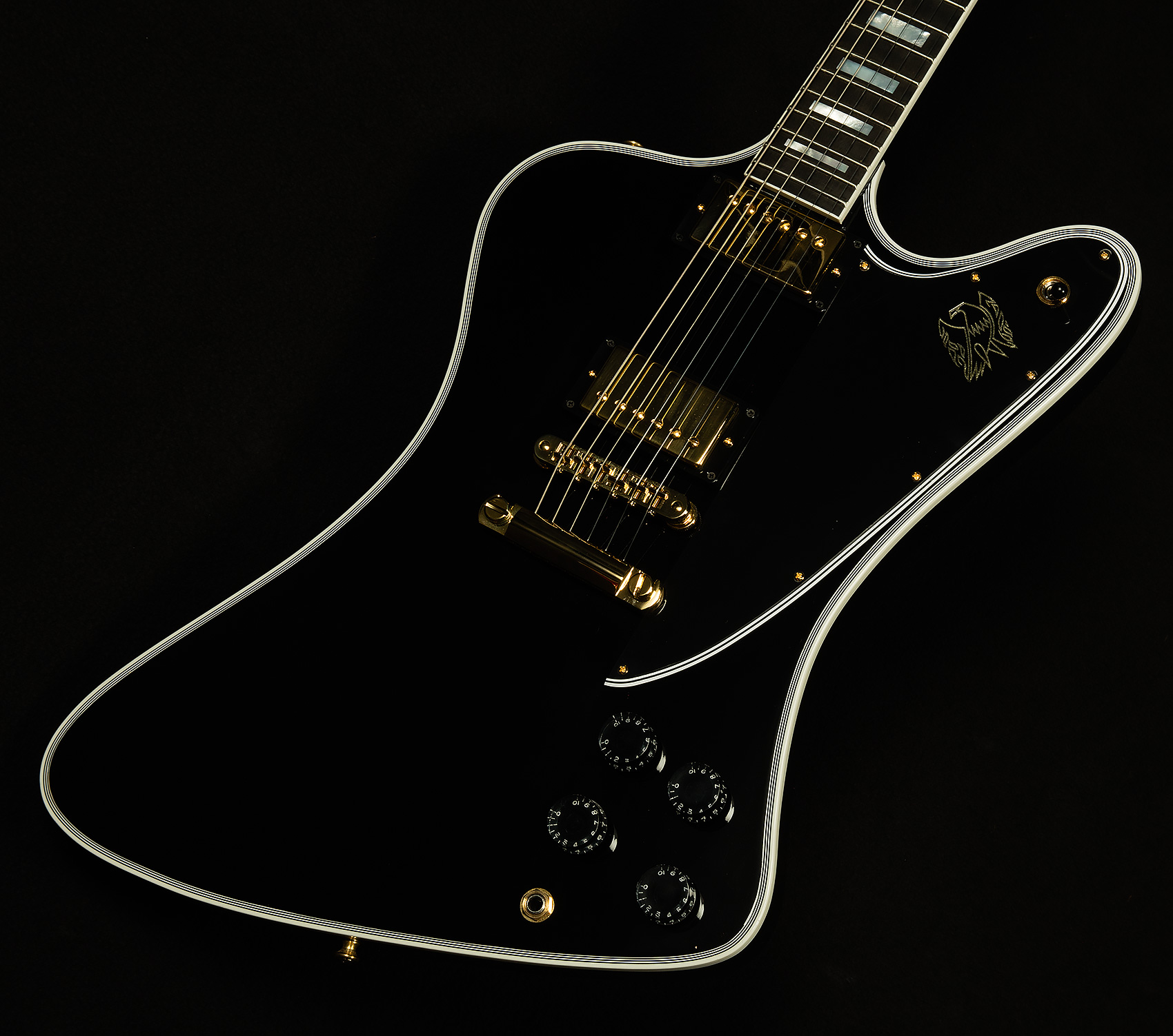 The Firebird Custom retains the signature streamlined shape that makes it one of Gibson's most visually enticing guitars while adding upscale Custom appointments and powerful humbuckers for added visual and sonic punch. The Solid Mahogany construction is adorned with multi-ply binding, gold hardware, pearl inlays and a solid Ebony fingerboard. It's bold, beautiful and one hell of a fun ride.