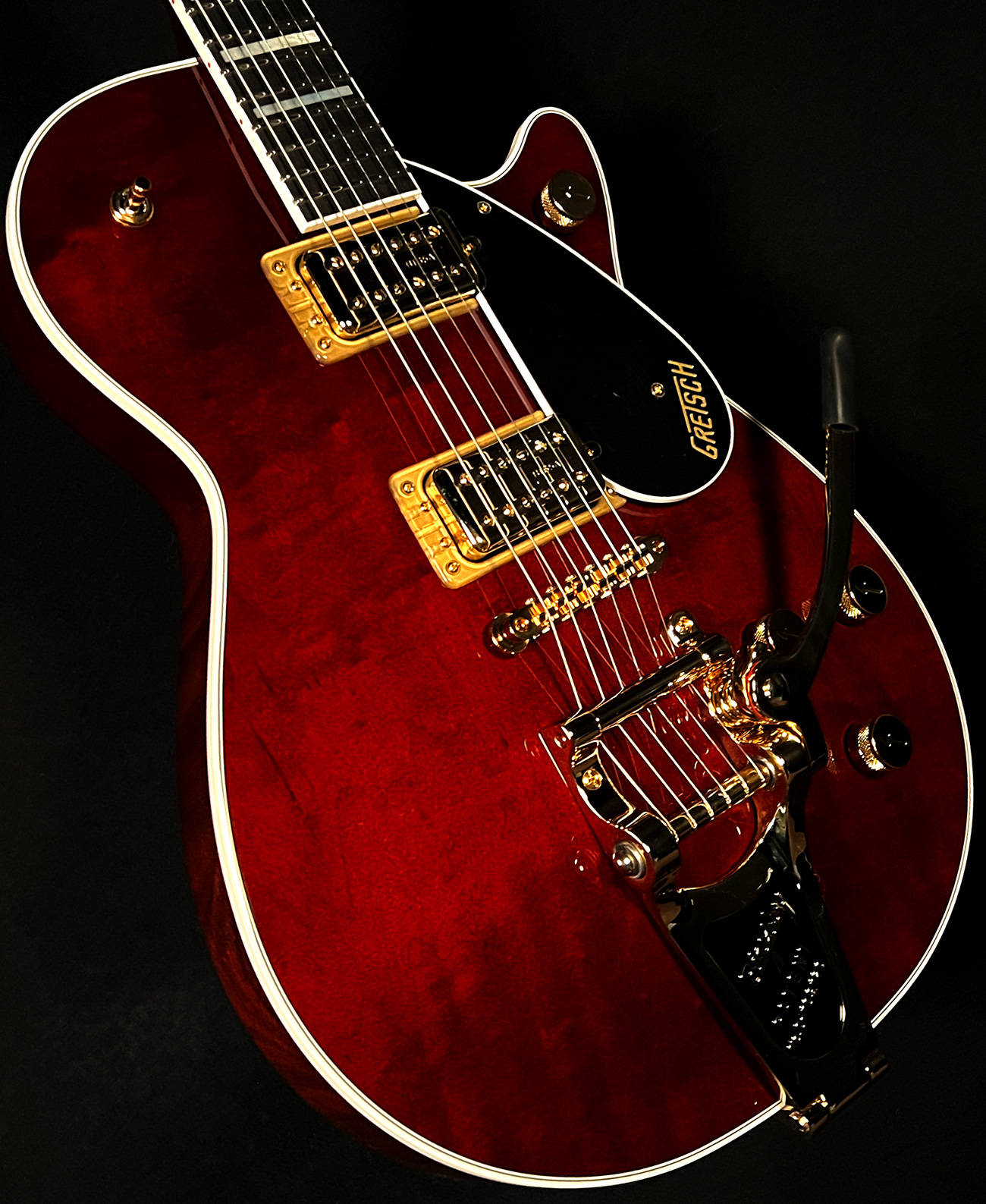 The all-new G6228TG Players Edition Jet BT with Bigsby and Gold Hardware gives you powerful overdrive and shimmering cleans at the stomp of a switch.