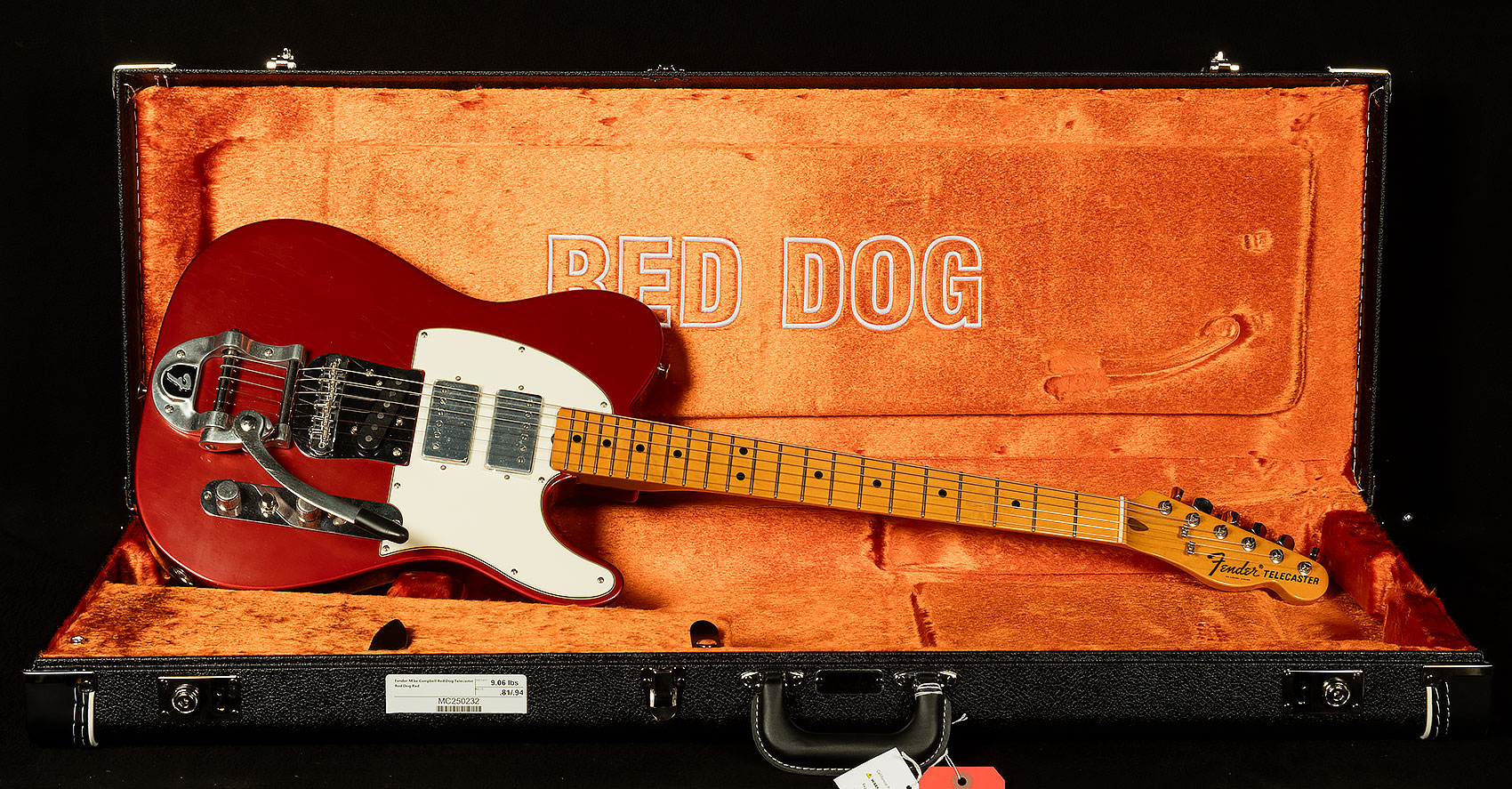 | Case | Fender Custom Vintage-Style Black Case with "Red Dog" Embroidered on Orange Interior |