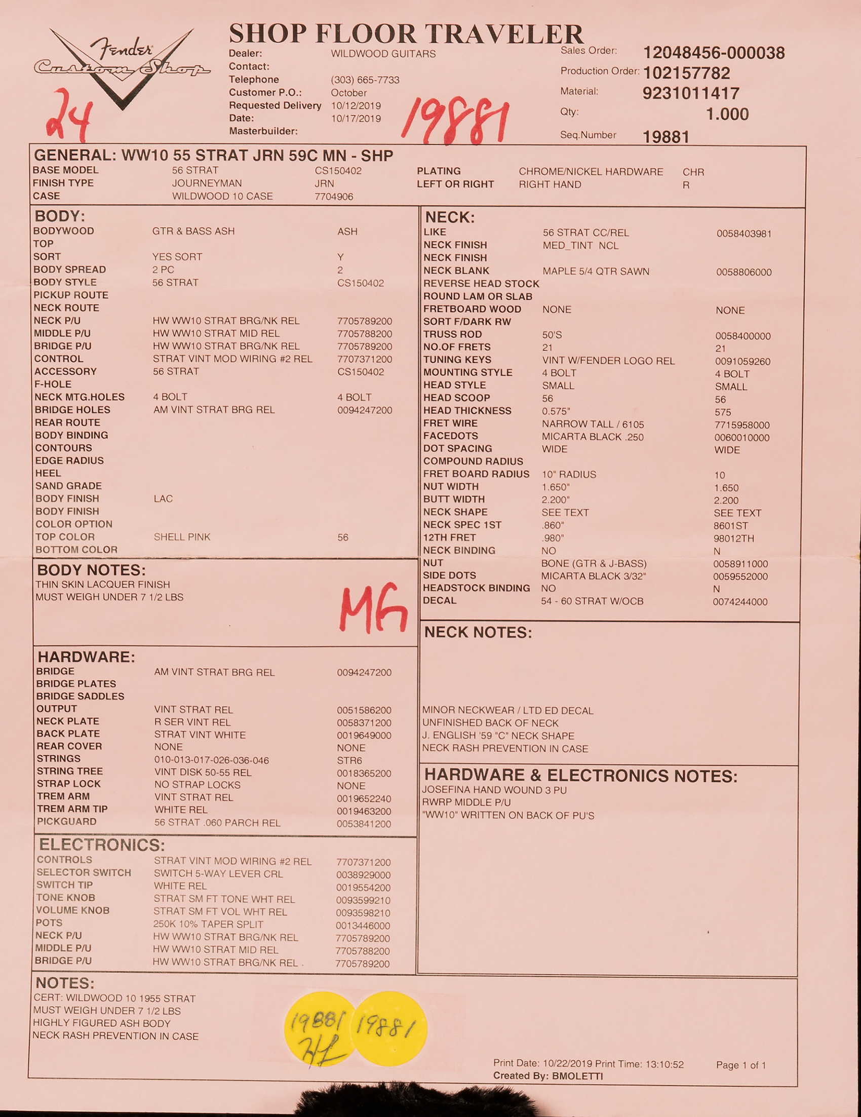 | Model | 2019 Fender Custom Shop Wildwood 10 1955 Strat |