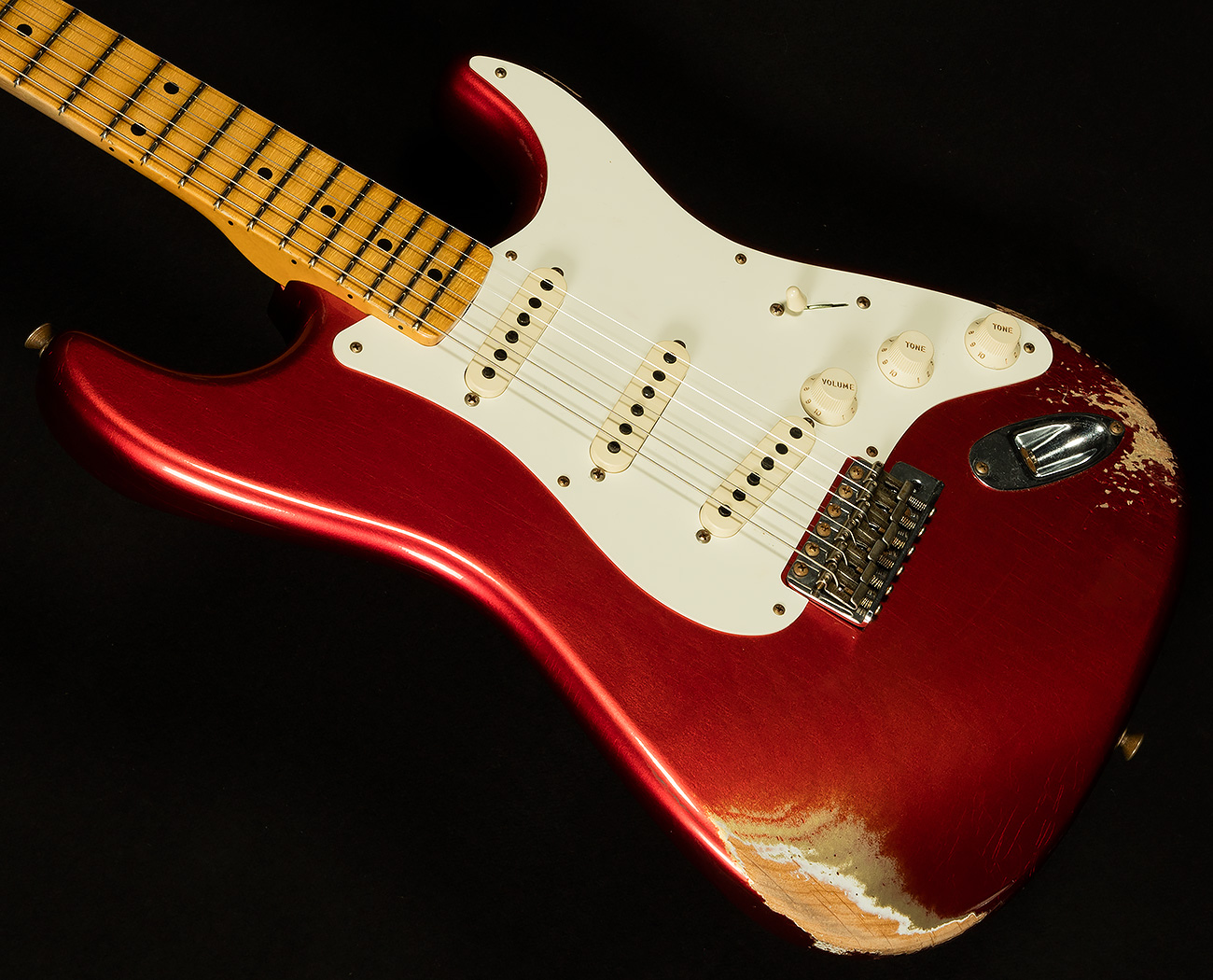 Nineteen fifty-seven was a banner year for the Fender Stratocaster. Though the Stratocaster became a runaway hit after hitmakers like Buddy Holly toted them on stage, Leo Fender’s tireless commitment to excellence led him to introduce a number of improvements to the Stratocaster’s design. In a quest to cater to players' demands, he introduced a soft V-shaped neck profile, and he started building some of the bodies out of alder. Our Wildwood 10 1957 Stratocasters pay homage to Leo Fender’s relentless work ethic by replicating the glories of the original heavenly ’57s. We have a wide variety of finishes with various types of relic-ing and lots of neck profiles, so we’re sure you’ll be able to find a ’57 that speaks to you. We invite you to browse our selection and experience the myriad delights the Wildwood 10 1957 Stratocaster has to offer.
