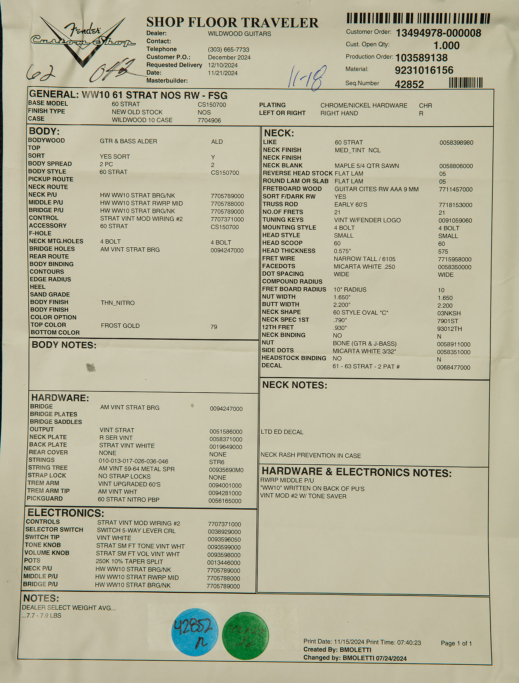 | Model | Dealer Select Wildwood 10 '61 Strat |