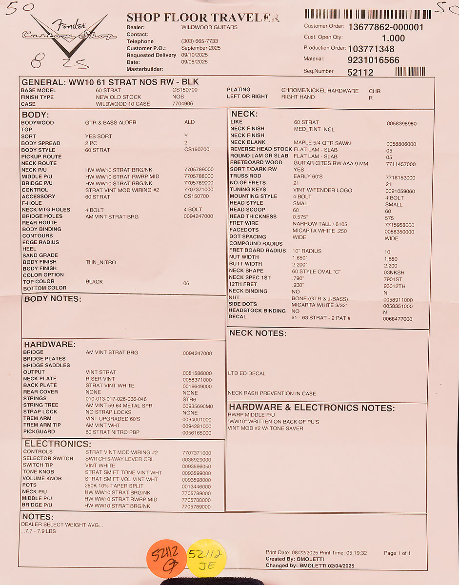 | Model | Dealer Select Wildwood 10 '61 Strat |