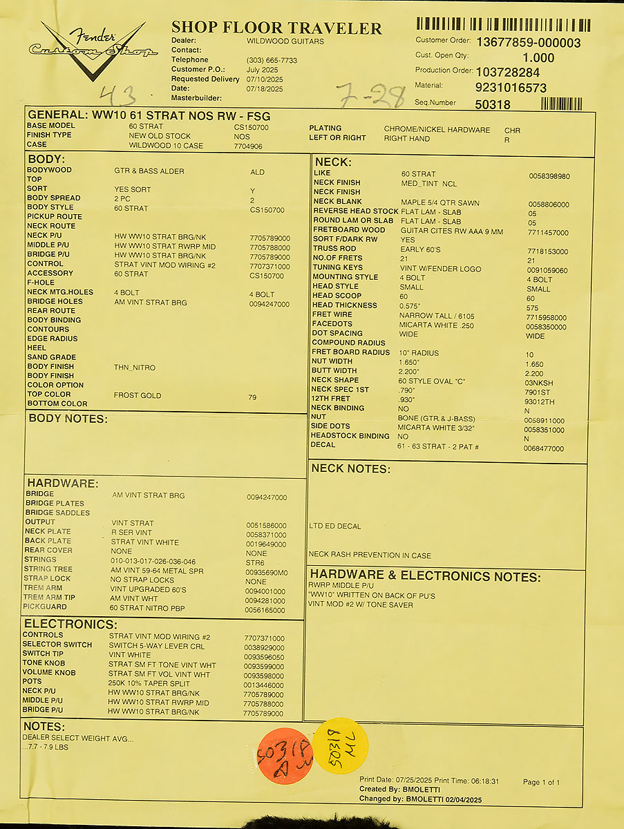 Each of these Custom Shop creations features a thin fifties-style nitrocellulose finish, which allows the voice of the resonant hand-selected tonewoods to shine through. They also have hand-wound Custom Shop pickups that are sure to inspire you to reach new heights on your sonic journey. Wildwood 10s feel great in your hands, too. Their modern 10” radius is suitable for a wide variety of styles and techniques, and their 6105 narrow-tall frets allow you to expend less energy with your left hand, especially when bending strings. To top it all off, they come with a limited edition Dealer Select Wildwood 10 hardshell case and a certificate of authenticity.