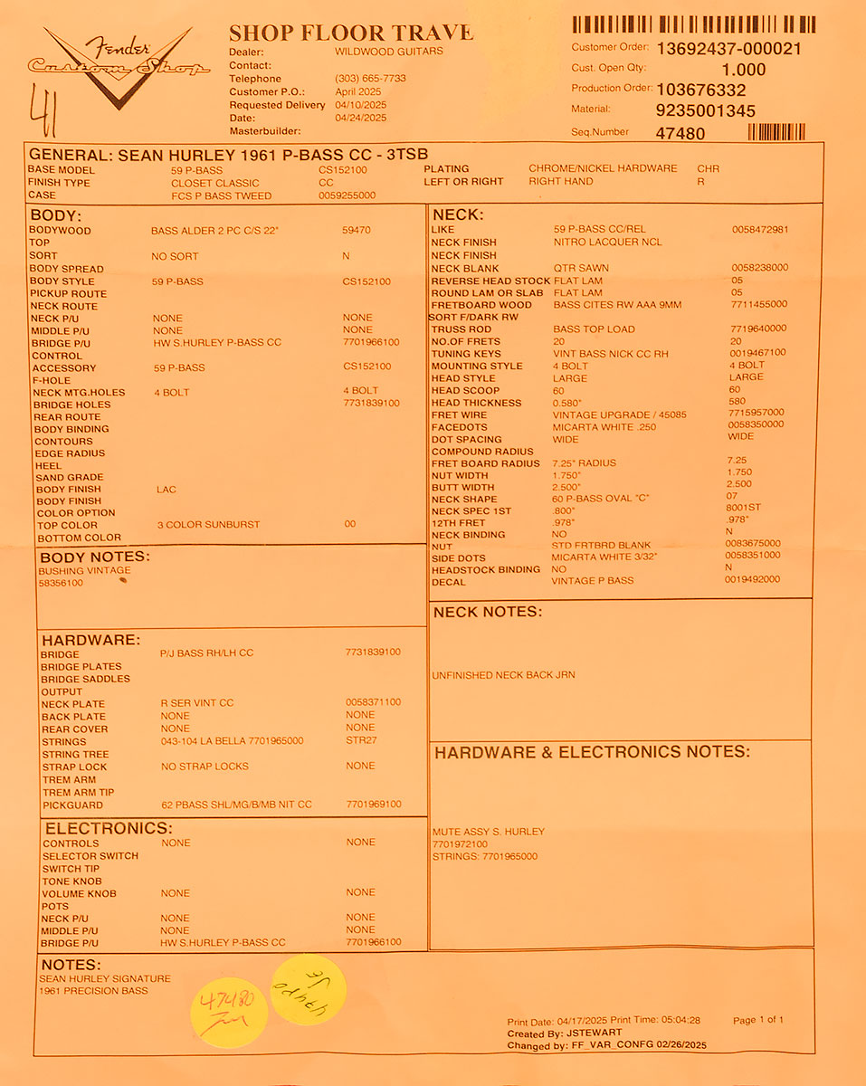 | Model | Sean Hurley Signature 1961 Precision Bass |