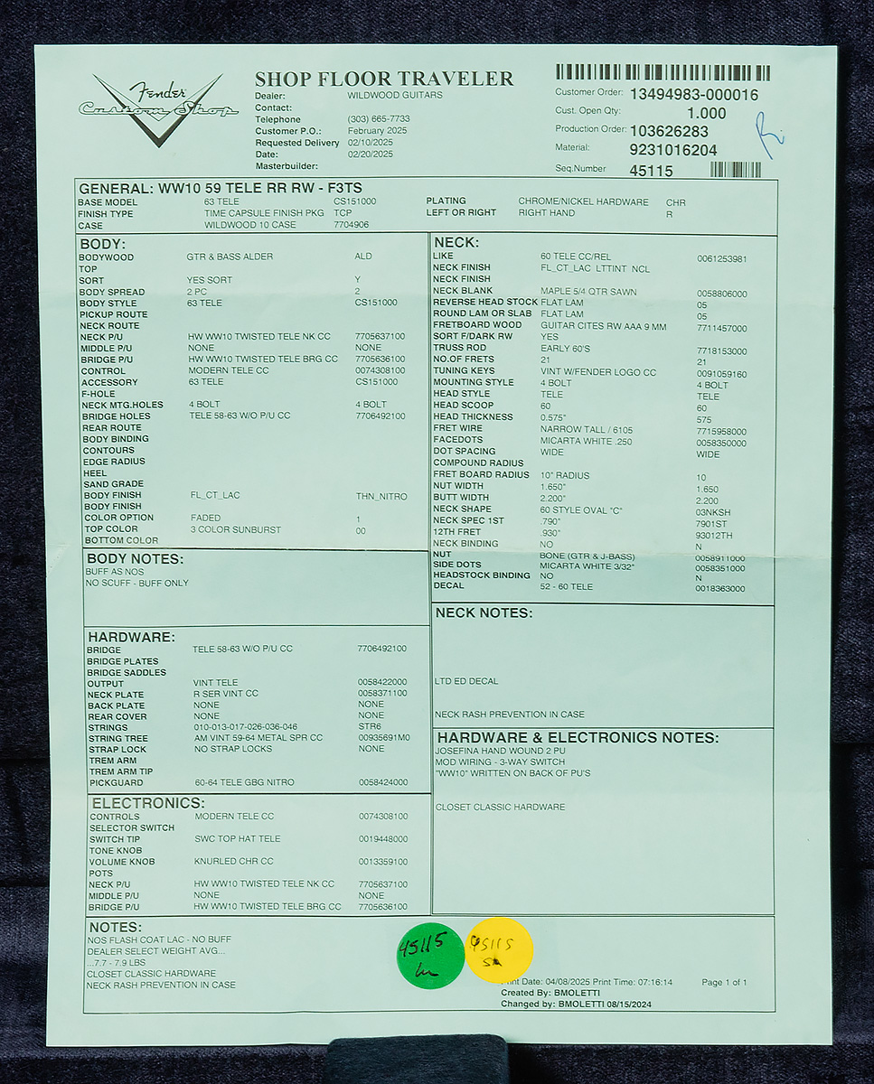 | Model | Dealer Select Wildwood 10 1959 Telecaster |