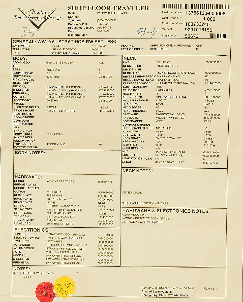 Each of these Custom Shop creations features a thin fifties-style nitrocellulose finish, which allows the voice of the resonant hand-selected tonewoods to shine through. They also have hand-wound Custom Shop pickups that are sure to inspire you to reach new heights on your sonic journey. Wildwood 10s feel great in your hands, too. Their modern 10” radius is suitable for a wide variety of styles and techniques, and their 6105 narrow-tall frets allow you to expend less energy with your left hand, especially when bending strings. To top it all off, they come with a limited edition Dealer Select Wildwood 10 hardshell case and a certificate of authenticity.