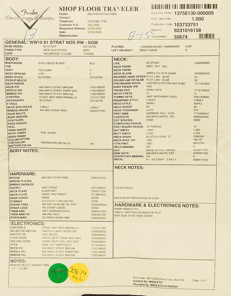 | Model | Dealer Select Wildwood 10 '61 Strat |