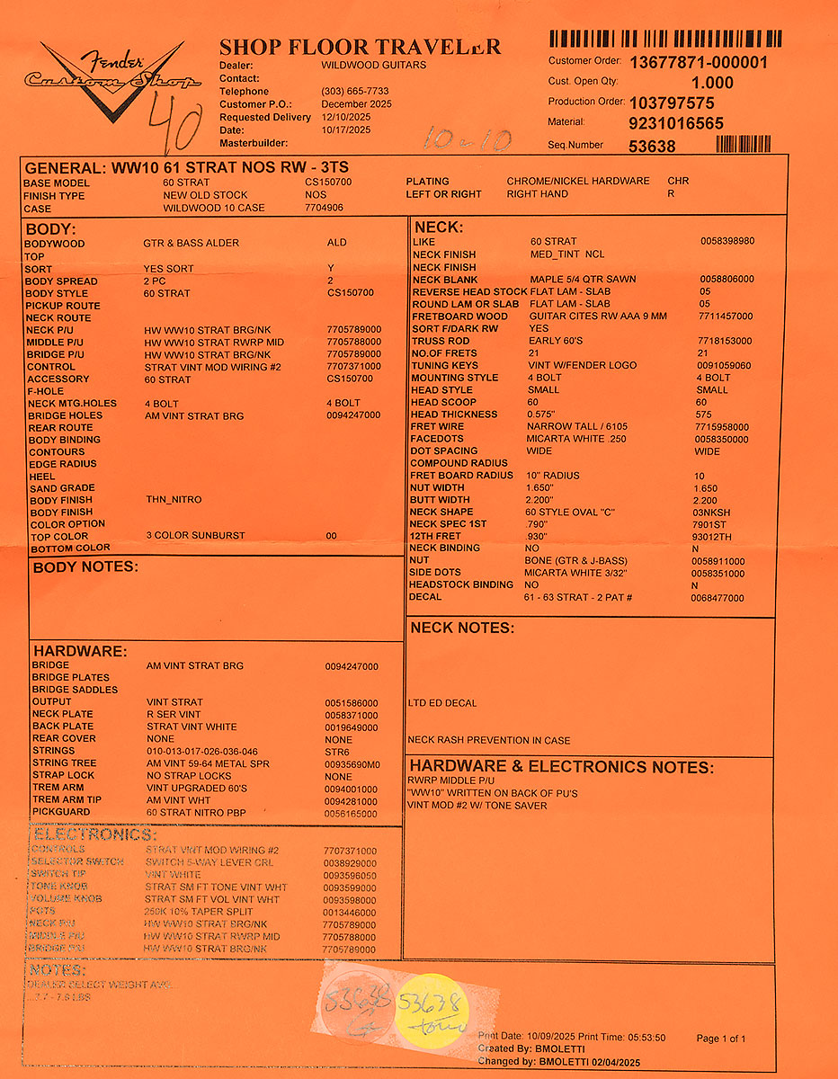 Fender Custom Shop Wildwood 10 1961 Stratocaster – NOS