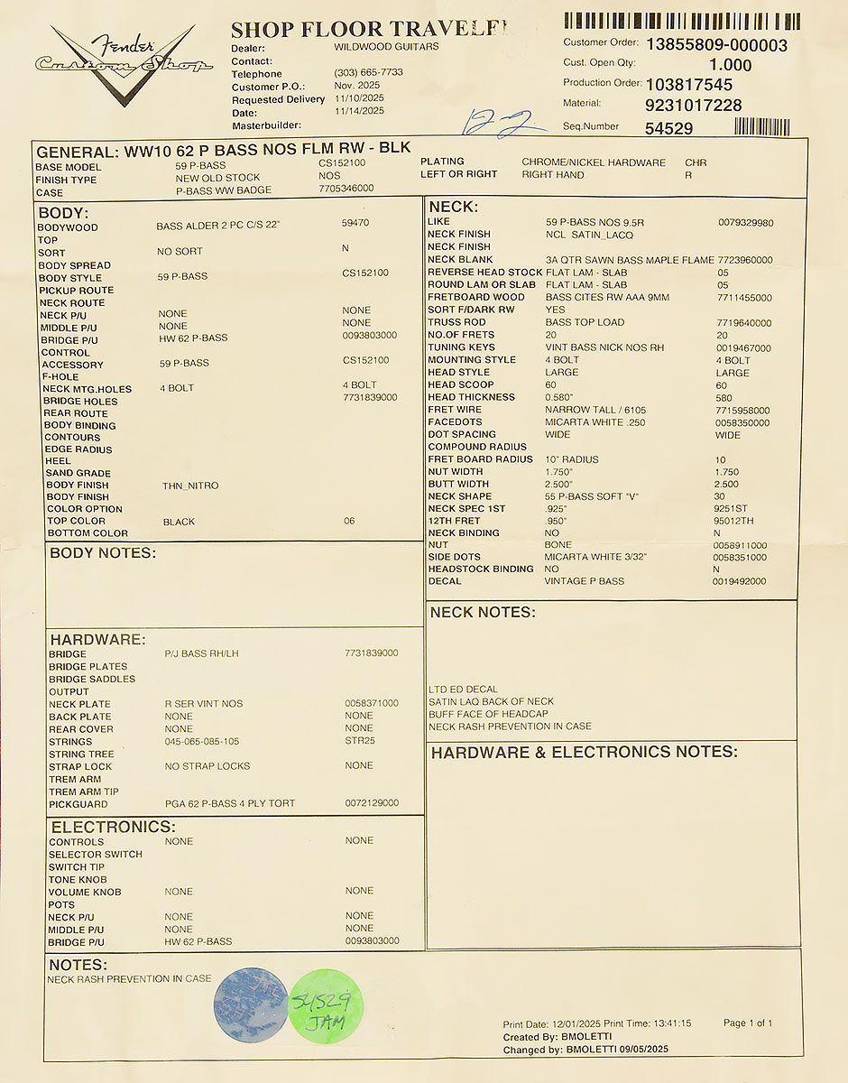 Fender Custom Shop Wildwood 10 1962 Precision Bass – NOS