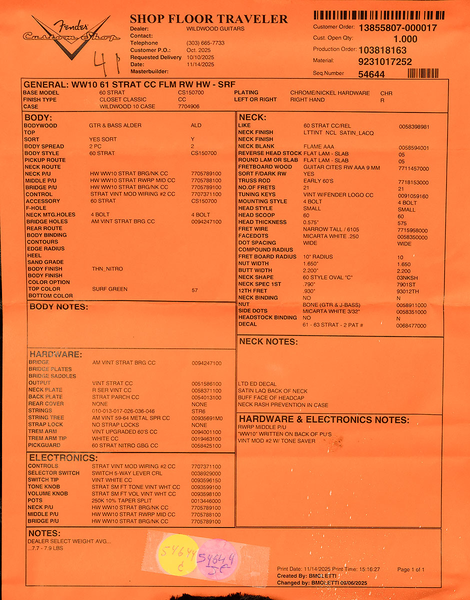 Each of these Custom Shop creations features a thin fifties-style nitrocellulose finish, which allows the voice of the resonant hand-selected tonewoods to shine through. They also have hand-wound Custom Shop pickups that are sure to inspire you to reach new heights on your sonic journey. Wildwood 10s feel great in your hands, too. Their modern 10” radius is suitable for a wide variety of styles and techniques, and their 6105 narrow-tall frets allow you to expend less energy with your left hand, especially when bending strings. To top it all off, they come with a limited edition Dealer Select Wildwood 10 hardshell case and a certificate of authenticity.