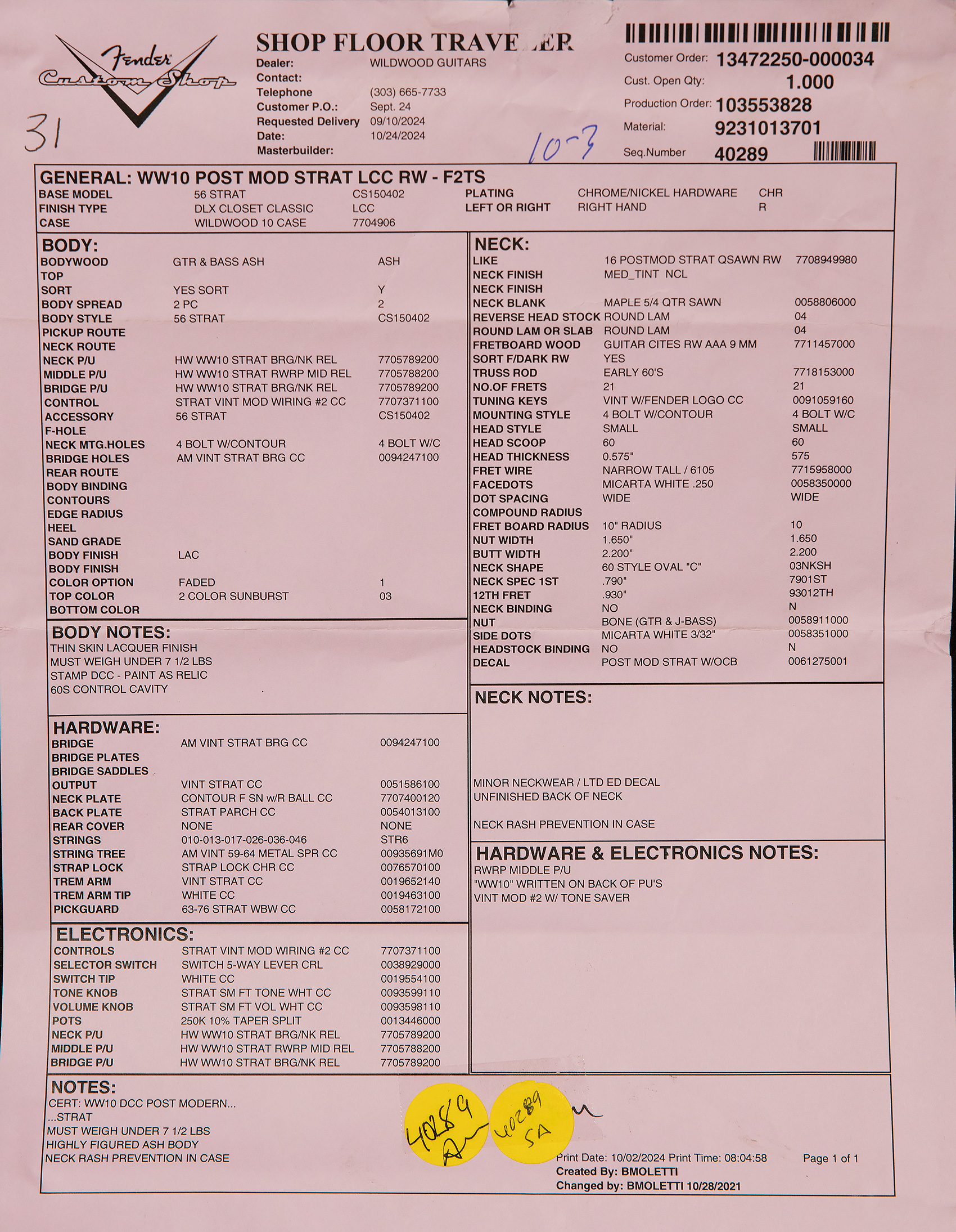 Fender Custom Shop Wildwood 10 Postmodern Stratocaster – Deluxe Closet Classic