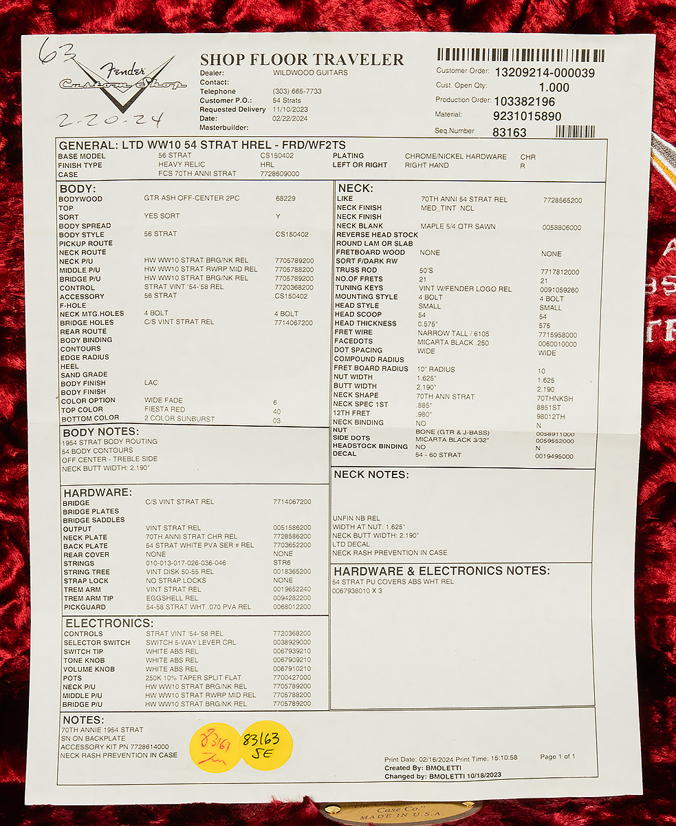 Case CandyFender Custom Shop COA and Floor Traveler